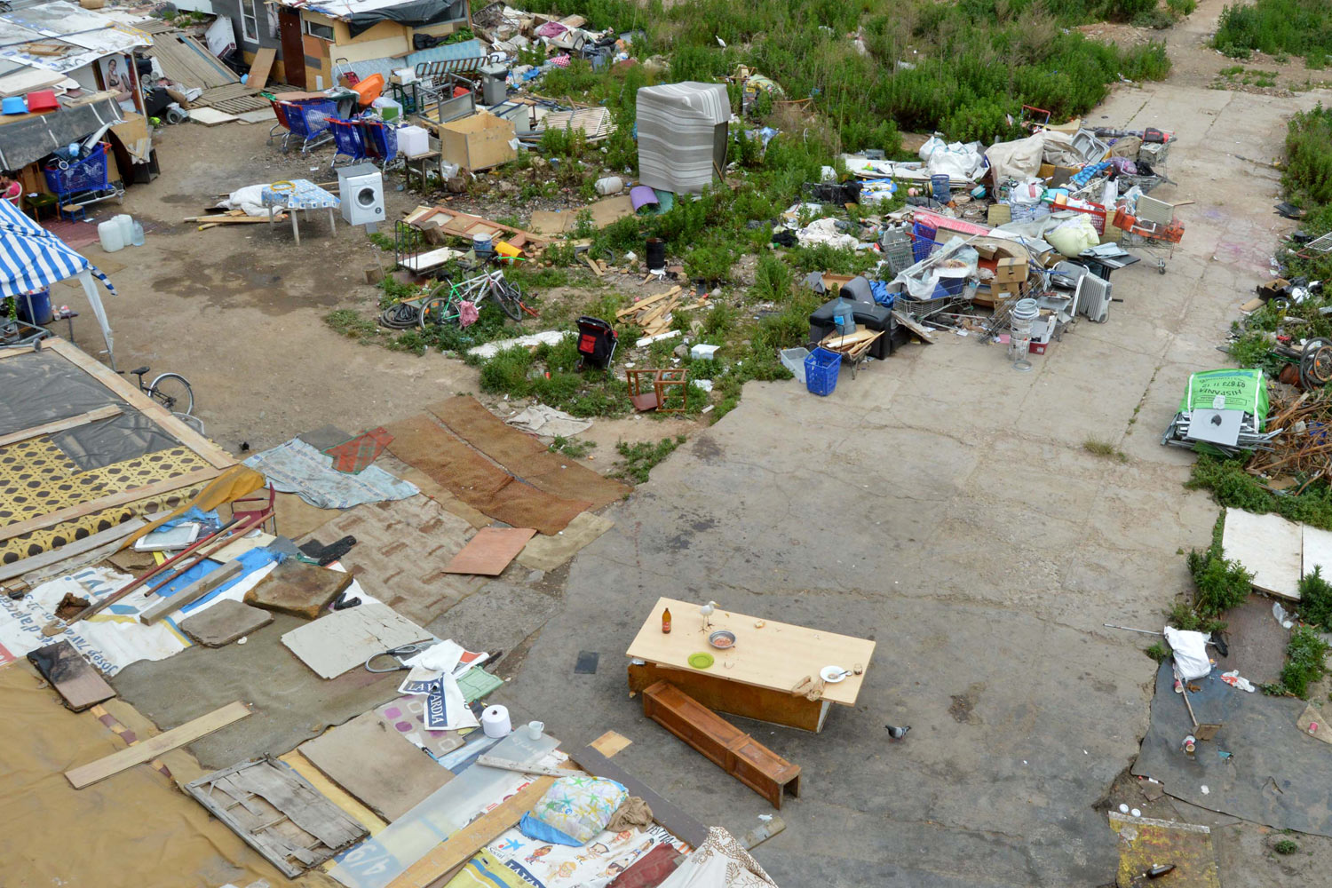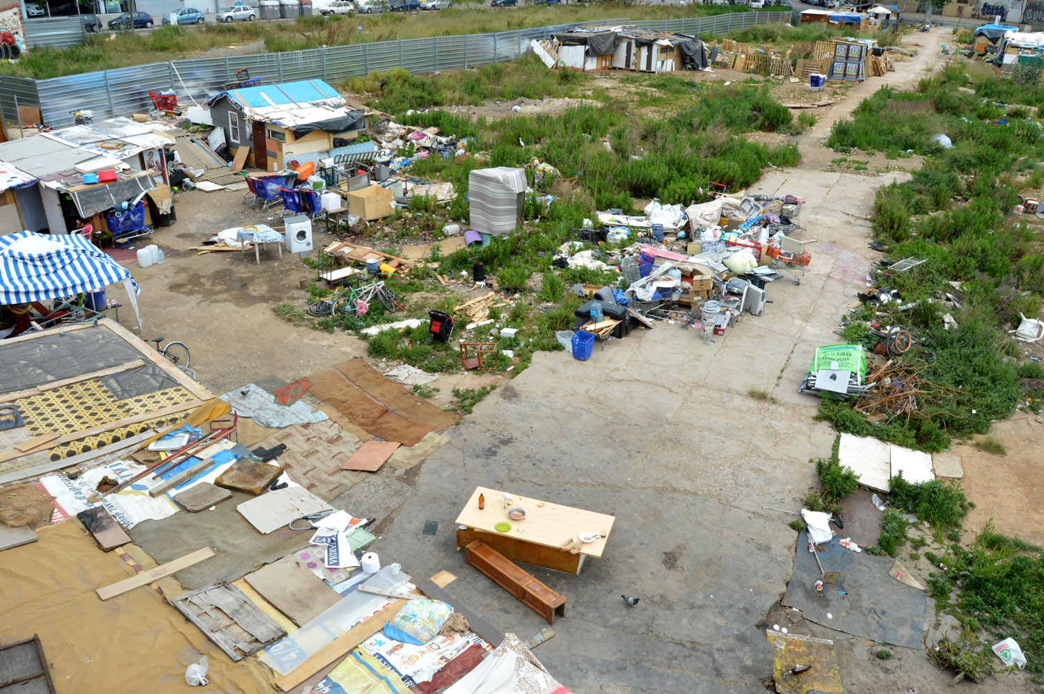 Fig 1. Descampado ocupado por barracas debajo de la plaza de las Glorias de Barcelona, entre las calles Bolivia y Tánger./ C. Pradera 05-2018