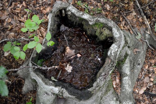 Cuando visito el Montseny, suelo estar expectante para ver si encuentro mosquitos arborícolas. Es importante tener en cuenta que las especies de árboles permitan la formación de huecos donde se pueda acumular agua (dendrotelmas). Especialmente indicado para ello es el haya. En esta entrada doy cuenta de una gran dendrotelma que encontré a unos 20 metros de la Font Bona (figura 1). Se trata de un lugar bien situado para el desarrollo de mosquitos, ya que está junto a una fuente muy visitada. Y esto significa que las hembras tienen cerca a personas a las que picar para extraerles sangre.