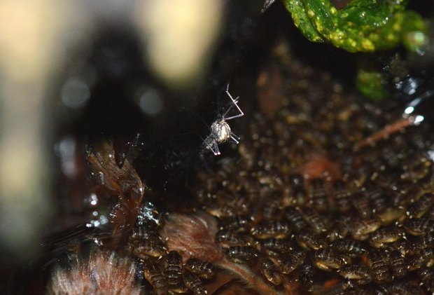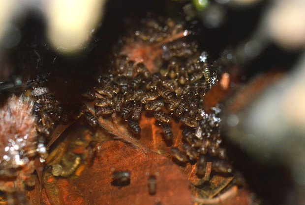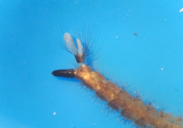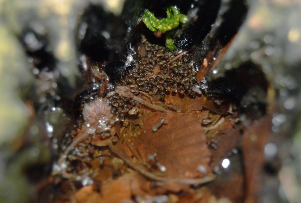 Encontré gran cantidad de larvas y pupas. En las imágenes de esta entrada doy detalle de ello (figuras 6 a 16). Me llevé una muestra a casa para observar larvas y pupas (figuras 17 a 21). Con la lupa binocular observé las larvas (figuras 22 a 24). En principio, lo que encontré en ese hueco de árbol fueron diferentes fases de desarrollo de Ae. geniculatus. Esperaba también encontrar Anopheles plumbeus, otra especie arborícola que se encuentra en la zona. En julio de 2016, dediqué una entrada a esta otra especie que encontré en el hayedo de Santa Fe del Montseny, cerca de la Font del Passavets, a unos 1.200 metros de altitud [1].