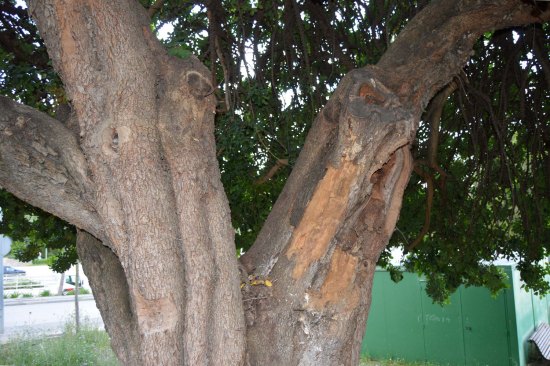 Hace un par de semanas, paseaba cerca de mi casa en Santa Coloma de Gramenet (Barcelona). Llevaba un rato observando árboles en busca de insectos. Como es época de emergencia de adultos de coleópteros xilófagos, iba mirando troncos en los que veía perforaciones de salida. Me acerqué a un árbol añejo que tenía una rama muerta (figura 2). Por su extremo se constataba que en el pasado fue podada. La rama muerta era de medio metro. Se veía seriamente afectada por alguna especie de carcoma (figura 3). Entonces me di cuenta de que a su alrededor volaban pequeños coleópteros. Al seguir con la mirada uno, vi que se posó sobre la rama afectada y que empezó a corretear de un lado para otro. Descubrí que había otros coleópteros muy parecidos. Vi que se estaban buscando y que algunos se juntaban para copular. Deduje que estaba en el momento de la salida de los adultos de una misma especie.