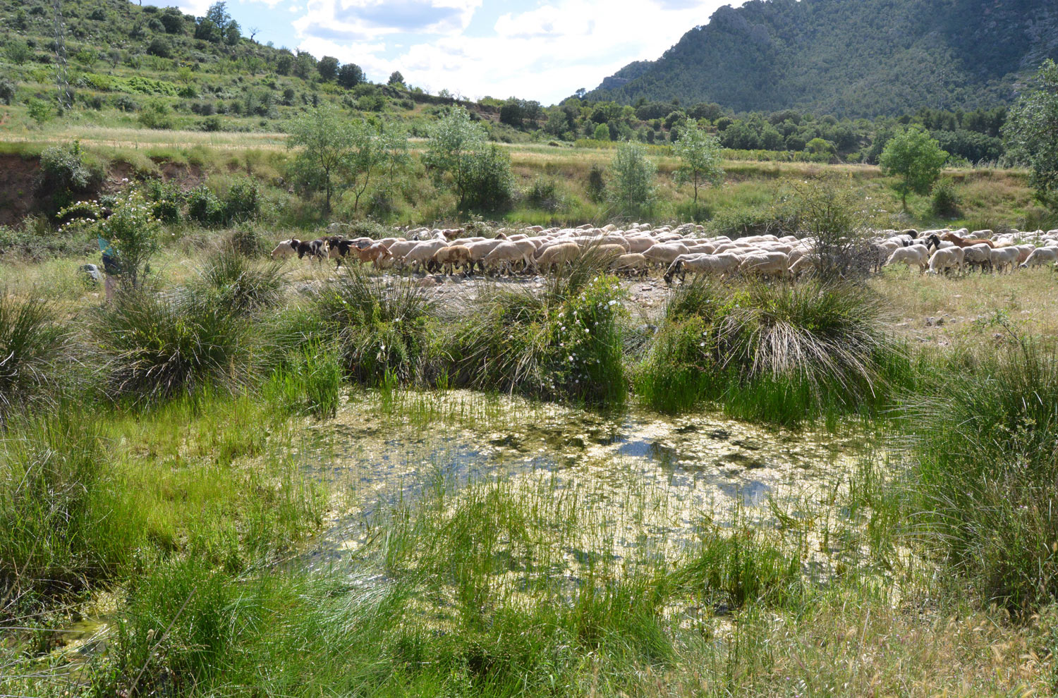 El lugar era propicio para que los tábanos me encontraran por una razón sencilla. Cerca de donde estaba había una granja porcina y un establo de ovejas. Y además había acumulaciones de agua. En la imagen número 1, se puede ver al rebaño de ovejas y cabras que el pastor dejó salir a eso de las cinco de la tarde. Pasó justo por una poza que se encontraba a escasos metros del río. Dentro de esta poza, una hora antes de que pasaran las ovejas, me había metido para recolectar algunas larvas de mosquito que resultaron ser Culex pipiens. En el agua también estuve buscando alguna larva de tábano, pero sin éxito. Sin embargo, hubo un momento en que escuché el particular aleteo de un tábano. Y cuando dejé de oírlo, lo noté sobre la pantorrilla de mi pierna derecha intentando extraer sangre. Lo primero que pensé es que estaba en una posición casi imposible para tomar una fotografía tan interesante de la situación. Así que lo cacé y lo metí en un bote de plástico.