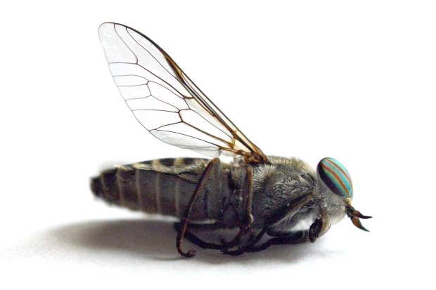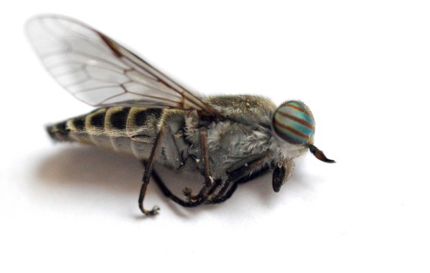 En esta entrada se pueden ver imágenes de la hembra de tábano que capturé. Pertenece al género Tabanus. No es fácil la identificación de las especies de esta familia de dípteros. En la Península Ibérica tenemos 96 especies repartidas en 10 géneros [1]. El género más numeroso es Tabanus con 33 especies. Nos sabría decir a qué especie en concreto pertenece. La más parecida que he encontrado es Tabanus quatuornotatus. Si alguien que me lea tiene conocimientos sobre esta familia, le agradecería me dijera de qué tábano se trata.