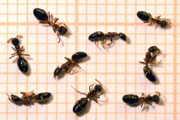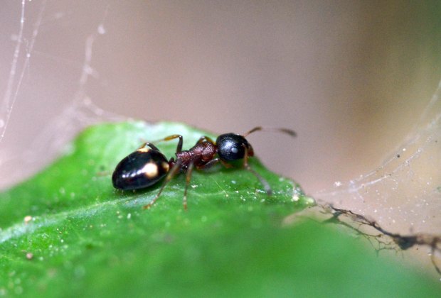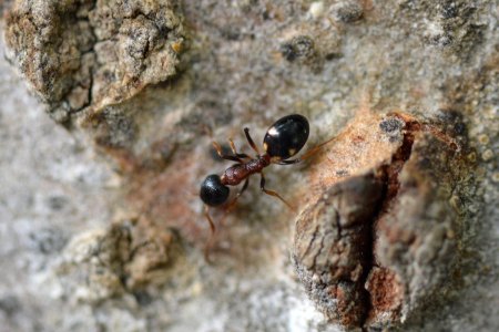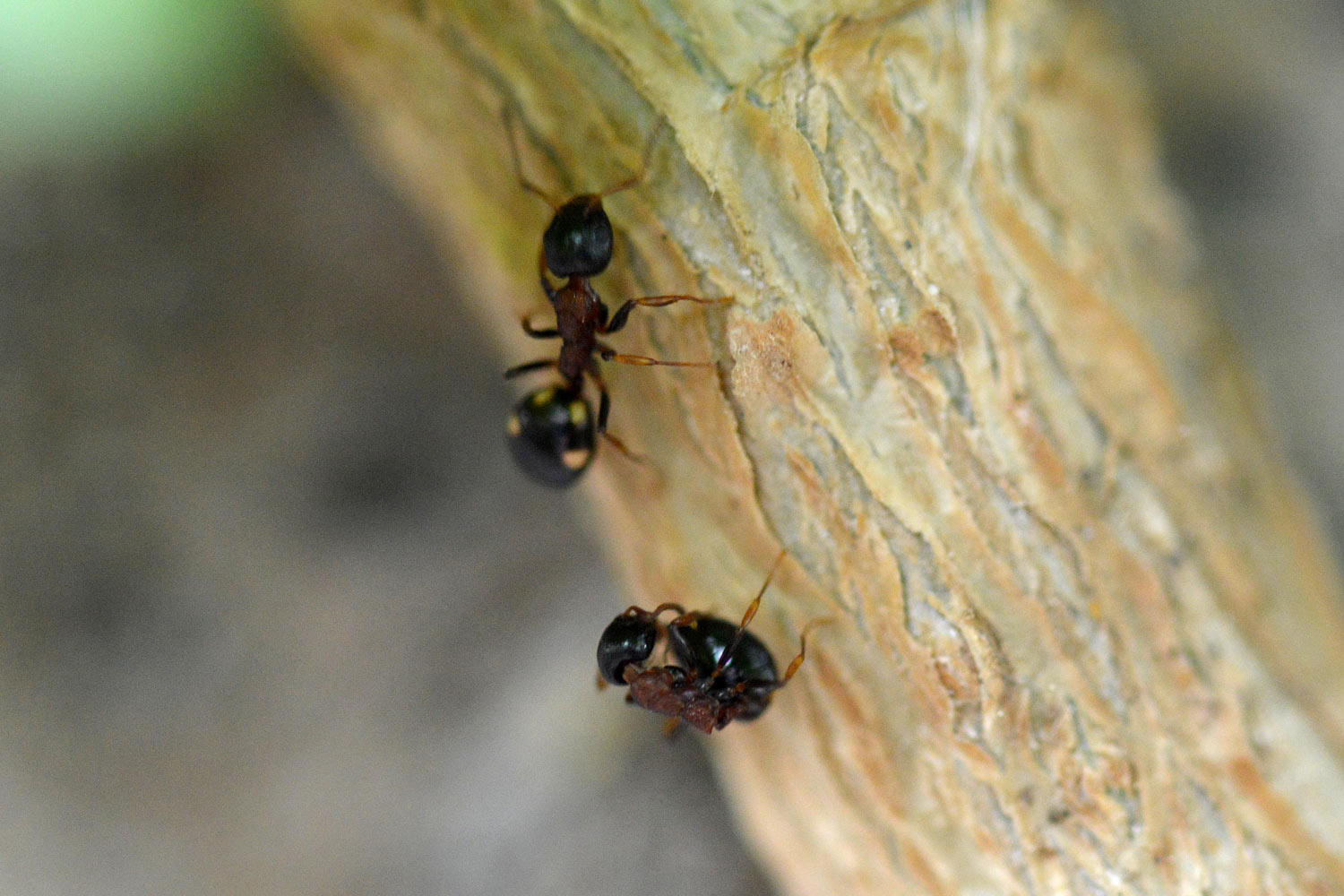 Me entretuve viendo la variedad de especies de hormiga que había. Me concentré en un árbol y pude ver obreras de Dolichoderus quadripunctatus. Subían y bajaban del árbol. Parecía una colonia numerosa. No supe ver en qué parte del árbol se encontraba establecida. Tomé fotografías y me llevé una muestra. Es una especie interesante. De hecho, es la única especie del género Dolichoderus que hay en Europa. Como se puede ver en la imagen número 1, las obreras miden entre 3 y 4 mm aproximadamente. Y tienen un aspecto muy característico. Es difícil confundir esta especie con otra. Lo básico es observar las cuatro manchas blancas que tiene en la parte delantera del gastro oscuro (figura 3). Y es por ello que fue nombrada con el adjetivo ‘quadripunctatus’ para distinguirla de otras especies. Parece que ello fue obra de Carlos Linneo en 1771, el creador de la nomenclatura binomial que usamos para nombrar las especies. De esta especie, también destaca su peculiar propodeo en forma de aleta y su peciolo puntiagudo. En fin, inconfundible.