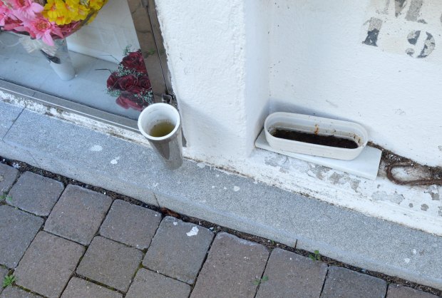 Además de los jarrones de serie de los nichos, vi, en menor medida, macetas llevadas por los usuarios. Se encontraban en los nichos que estaban a pie de suelo (figuras 13 a 17). Tampoco deberían estar allí, ya que en la entrada del cementerio se hacía mención expresa de la prohibición de llevar jarrones y macetas. Por otra parte, pude observar un imbornal con agua acumulada (figuras 18 y 19). Y también canalones de recogida de aguas pluviales, otro lugar donde también se podría acumular agua en el caso de que estuvieran sucios (figuras 20 y 21). Todos estos elementos deberían de estar controlados y tratados. Y más cuando las autoridadades sanitarias, Generalitat de Catalunya y Diputación de Barcelona, consideran que los cementerios son lugares que merecen atención especial dentro del plan municipal de control de Ae. albopictus. Lo cierto es que he podido observar muy pocos cementerios en los que se tomen en serio evitar la proliferación de mosquitos.