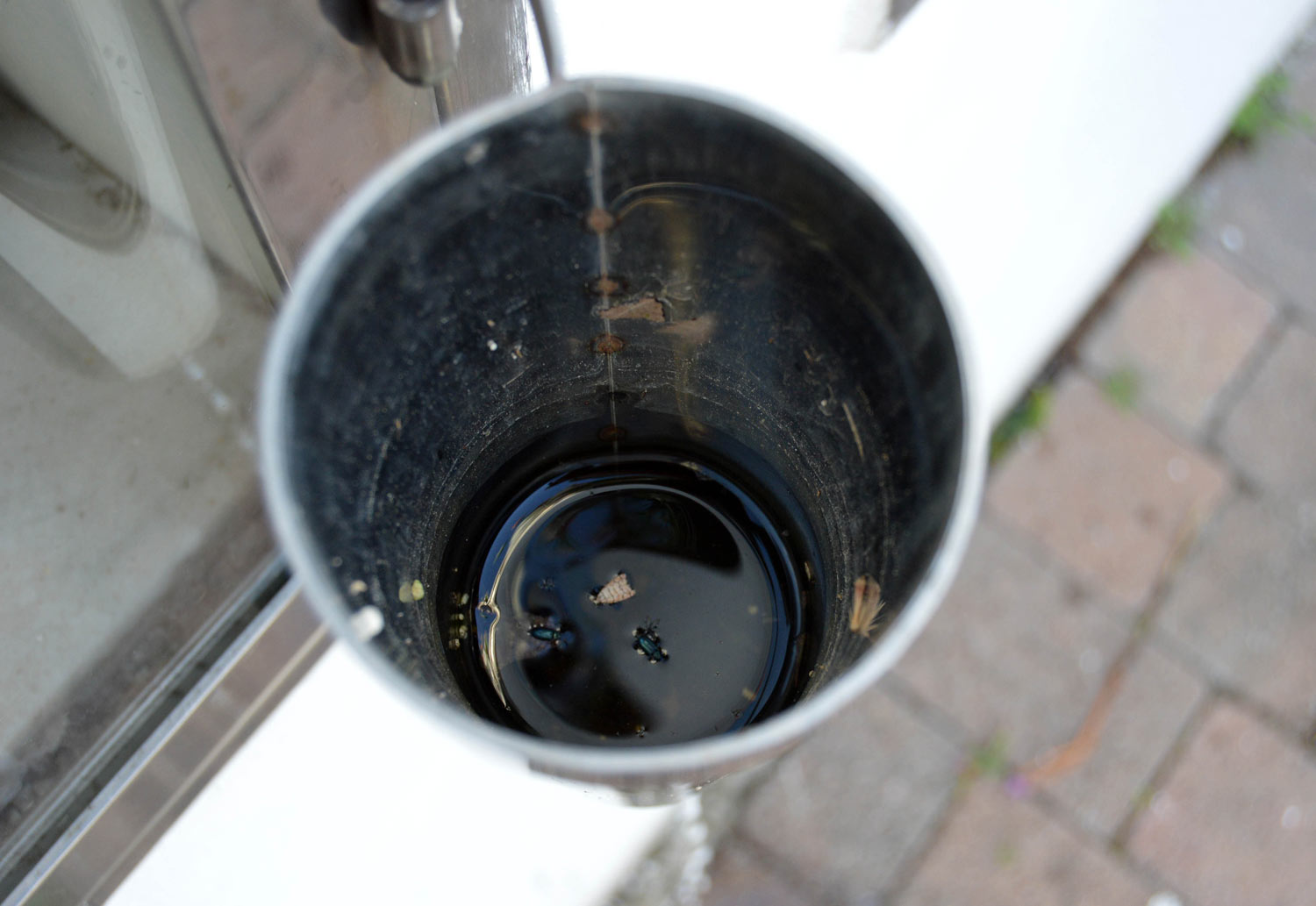 Además de los jarrones de serie de los nichos, vi, en menor medida, macetas llevadas por los usuarios. Se encontraban en los nichos que estaban a pie de suelo (figuras 13 a 17). Tampoco deberían estar allí, ya que en la entrada del cementerio se hacía mención expresa de la prohibición de llevar jarrones y macetas. Por otra parte, pude observar un imbornal con agua acumulada (figuras 18 y 19). Y también canalones de recogida de aguas pluviales, otro lugar donde también se podría acumular agua en el caso de que estuvieran sucios (figuras 20 y 21). Todos estos elementos deberían de estar controlados y tratados. Y más cuando las autoridadades sanitarias, Generalitat de Catalunya y Diputación de Barcelona, consideran que los cementerios son lugares que merecen atención especial dentro del plan municipal de control de Ae. albopictus. Lo cierto es que he podido observar muy pocos cementerios en los que se tomen en serio evitar la proliferación de mosquitos.
