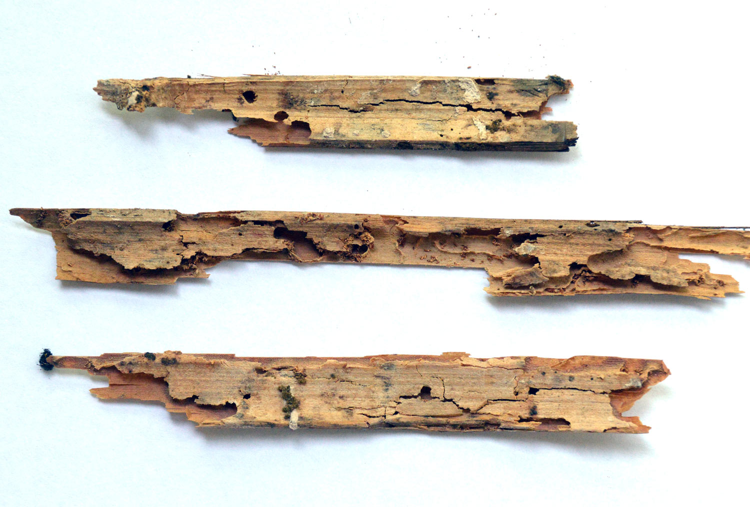 Es por todo ello que es muy importante, cuando se realiza una inspección, determinar qué carcoma anóbida está atacando los elementos de madera. Me he encontrado con presupuestos en los que se decía que el cliente tenía A. pucntatum cuando lo que había era O. ptilinoides. Esta falta de profesionalidad a la hora de hacer un diagnóstico se puede pagar caro. En primer lugar, porque O. ptilinoides realiza un ataque total a toda la madera que hay en una vivienda: vigas, parquet, mobiliario, marcos, etc. Y en segundo lugar, porque hay que realizar bien el tratamiento. De lo contrario, persistirá. Un caso es el de muebles que son retirados de una vivienda y llevados a tratar por medios no químicos. Es probable que O. ptilinoides persista en otros lugares de la vivienda. Y al regresar de nuevo el mueble, al año siguiente una hembra oviposite de nuevo en la madera.