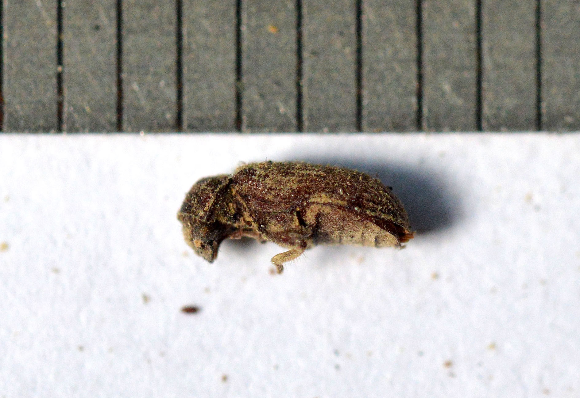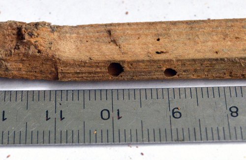 Por todo lo dicho, en un diagnótico hay que estar alerta si encontramos O. ptilinoides. Y mirar más allá de un tratamiento puntual sobre viguería o sobre mobiliario. Hay que advertir a nuestros clientes que no es fácil la eliminación de esta especie de carcoma que se puede calificar de muy destructiva. En otra entrada, cuando disponga de tiempo, explicaré cómo distinguir O. ptilinoides de A. punctatum, ambos de las subfamilia Anobiinae. Por lo pronto, mencionar algunos detalles. En primer lugar, O. ptilinoides es de mayor tamaño. Son 5-8 mm de largo frente a 3-4 mm de A. punctatum. En segundo lugar, la diferencia entre machos y hembras en O. ptilinoides es mayor. Si recogemos adultos, veremos que hay una gran variedad de tamaño. Y esto se ve en los agujeros de salida. Sobre madera se observa perforaciones de diverso tamaño. En tercer lugar, si observamos de lado ambas especies a través de la lupa binocular, se verán diferencias en el pronoto. En el caso de A. punctatum, el pronoto es más anguloso y cubre más la cabeza. Y por supuesto, los ojos, que son de gran tamaño en O. ptilinoides.