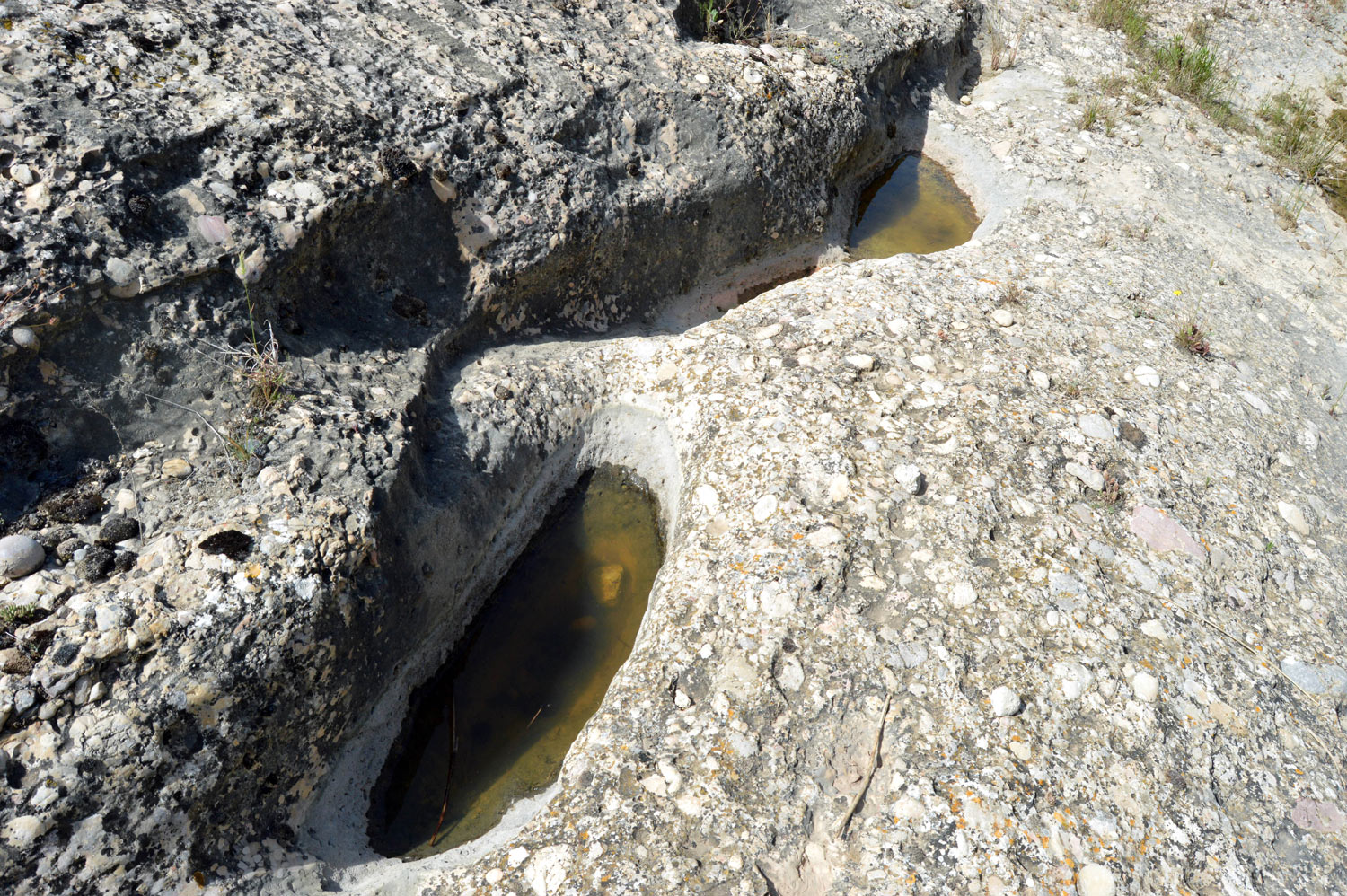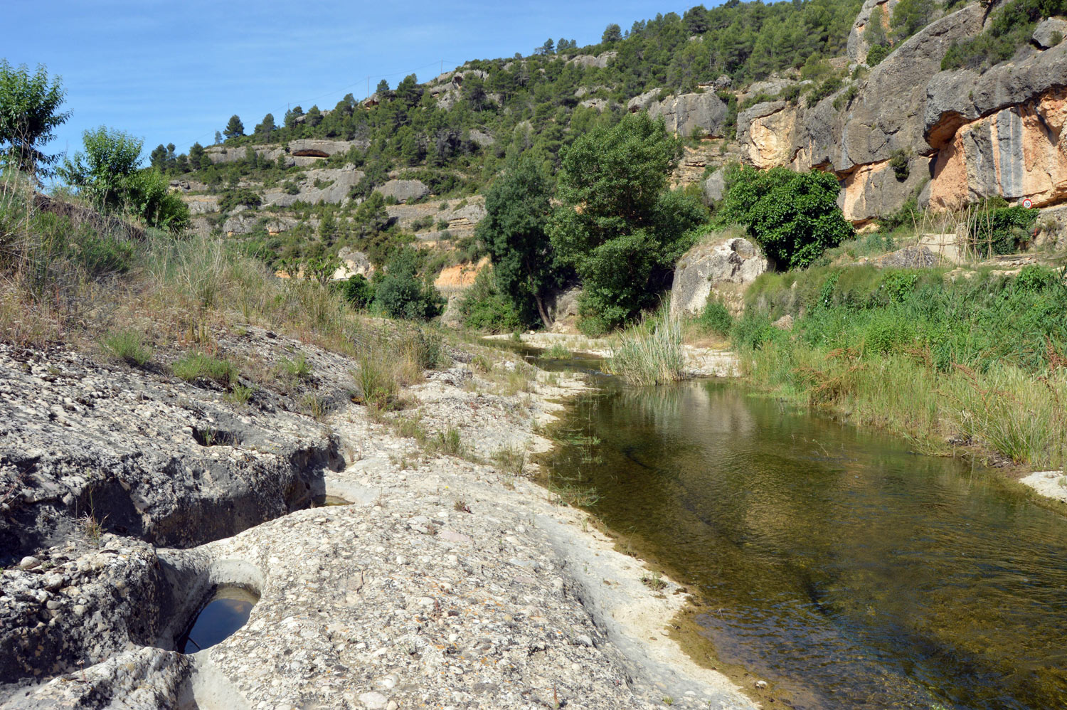 Fig 2. Charcos en la roca junto al río Montsant, Margalef de Montsant (Tarragona)./ C. Pradera 06-2018