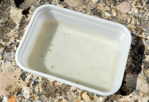 Fig 4. Muestra recogida de un charco en la roca en Margalef de Montsant, Priorat (Tarragona)./ C. Pradera 06-2018