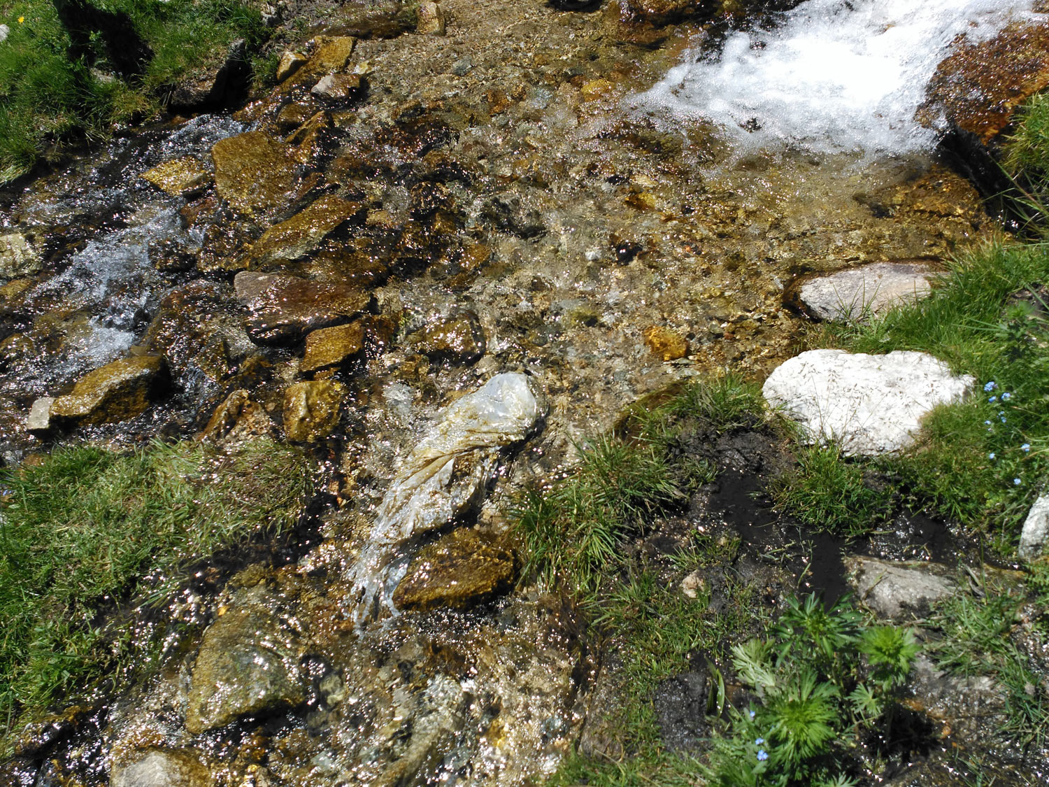 El pasado sábado 30 de junio estuve en Ulldeter, Ripollès (Girona), un circo montañoso con el pico más alto a 2.881 m. En este lugar se encuentra el nacimiento del río Ter. La base del circo está ocupado por las pistas de esquí de Vallter 2000. Una carretera permite el acceso a esta zona de alta montaña de gran belleza. Aproveché para observar qué especies de simúlidos (Simuliidae) había en la zona. Estuve buscando en el torrente de la Portella, en un tramo entre los 2.050 y los 2.100 metros (figura 1). En la imagen número 2, se puede ver indicado el tramo sobre un plano del Institut Cartogràfic i Geològic de Catalunya (ICGC).