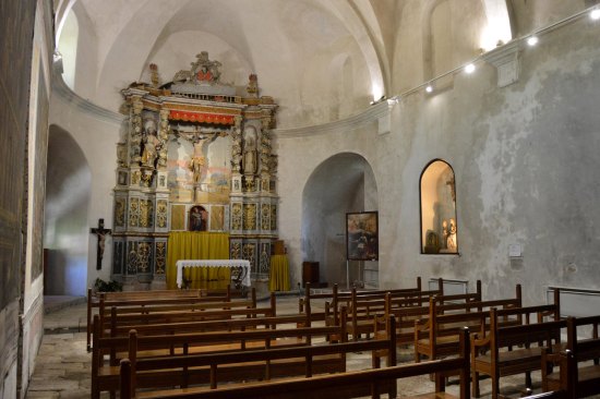 El pasado domingo 1 de julio estuve Prats de Molló, población cercana a la frontera que pertenece al departamento francés de Pirineos Orientales. Me acerqué a la iglesia parroquial para visitarla. En la imagen número 1, se puede ver la nave que data del siglo XVII, cuando fue remodelada la anterior iglesia románica del siglo XIII, de la cual queda básicamente el campanario [1].