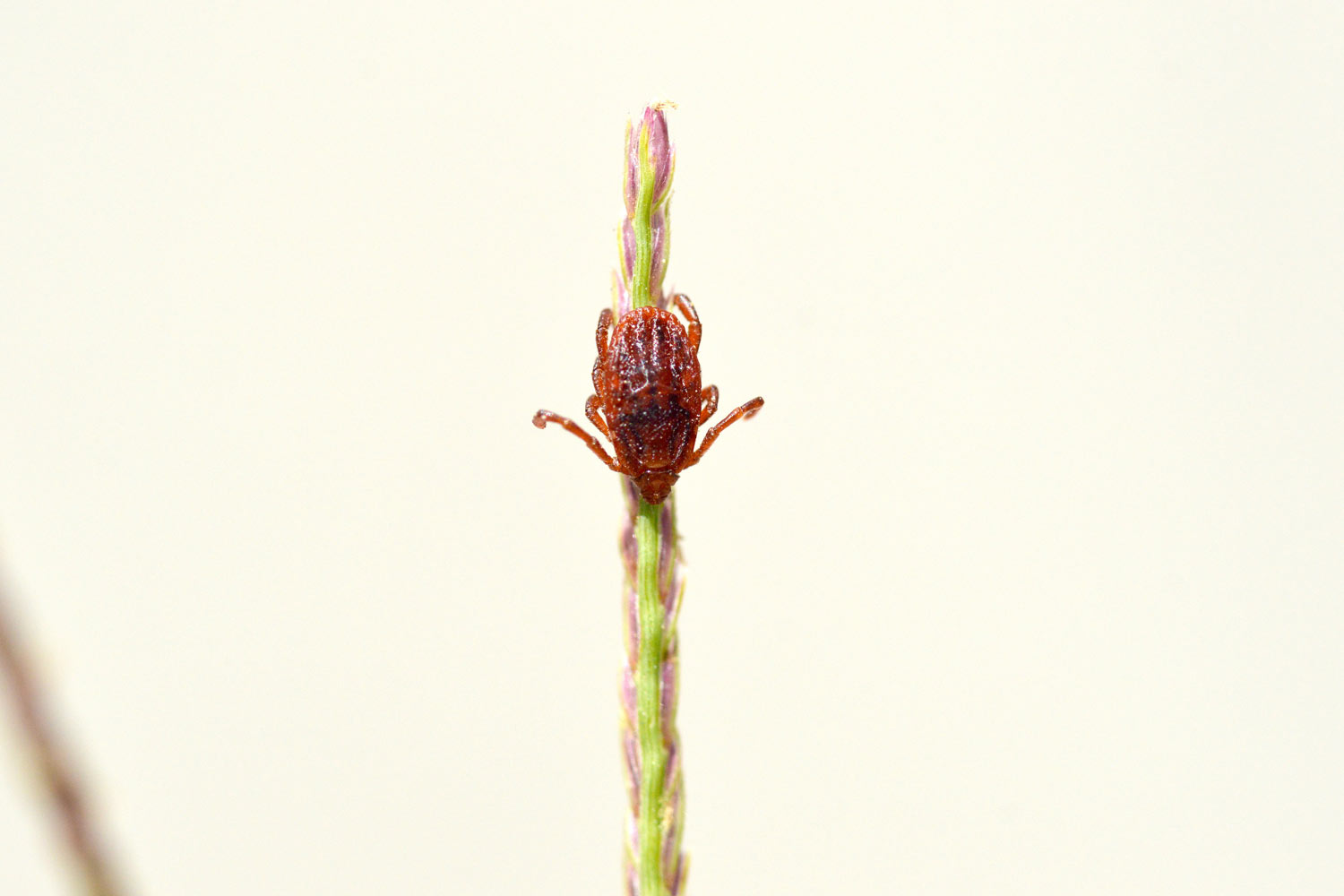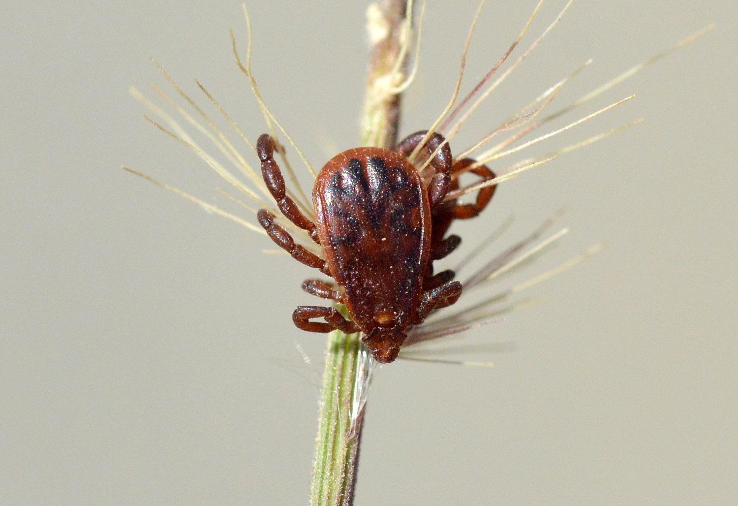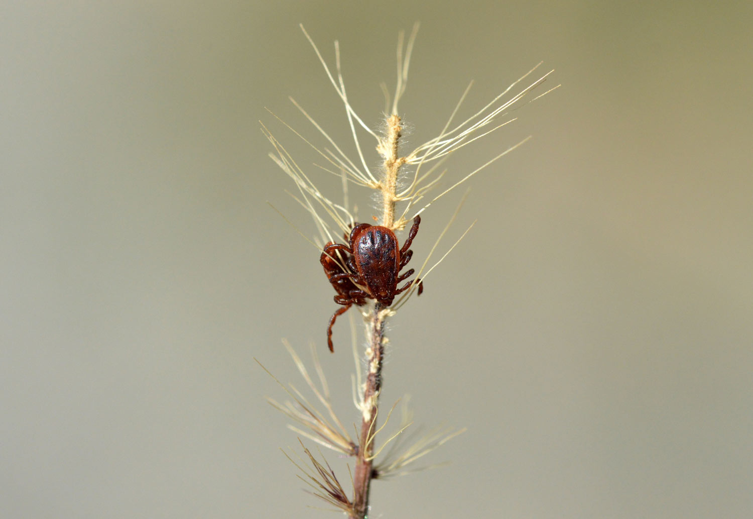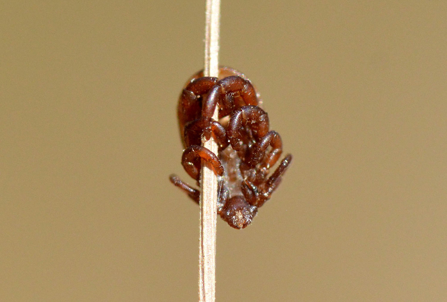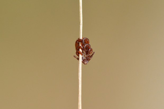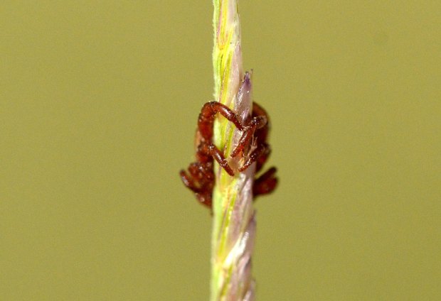 La garrapata marrón del perro (Rhipicephalus sanguineus) es común en la zona donde vivo, en el área metropolitana de Barcelona. De hecho, es la garrapata habitual en el área urbana y periurbana, ya que encuentra asociada a los perros, de ahí su nombre común. En las imágenes de esta entrada se pueden ver diferentes ejemplares de esta especie que se encontraban sobre hierbas y ramitas esperando que pasara un perro. O en su defecto, una persona. Todas eran ejemplares adultos. Las imágenes las tomé el pasado sábado en un tramo de calle de una urbanización de Santa Eulàlia de Ronçana (Vallès Oriental).