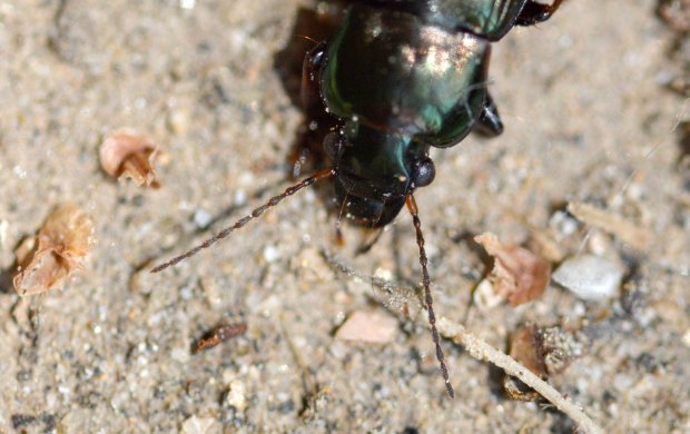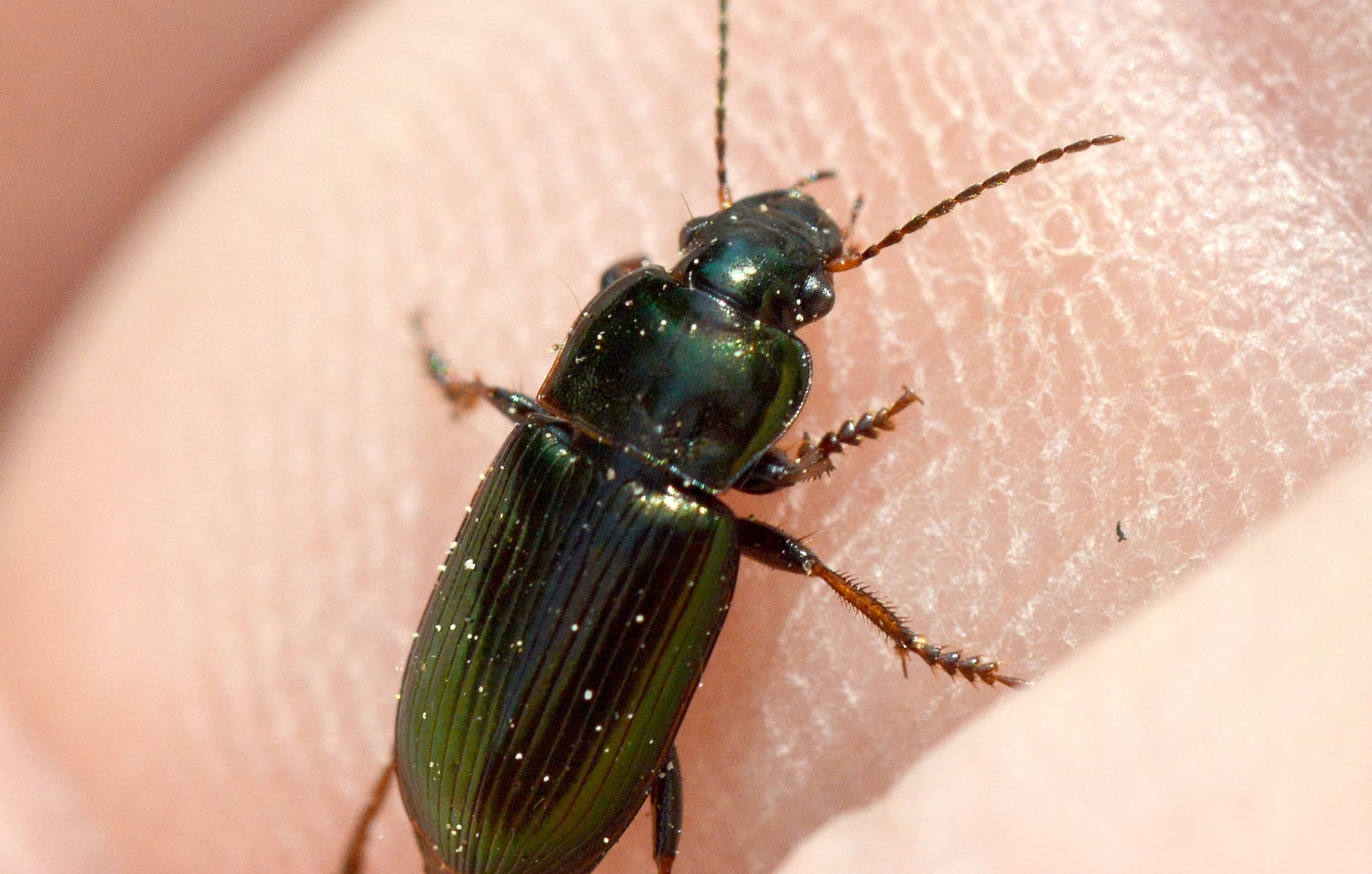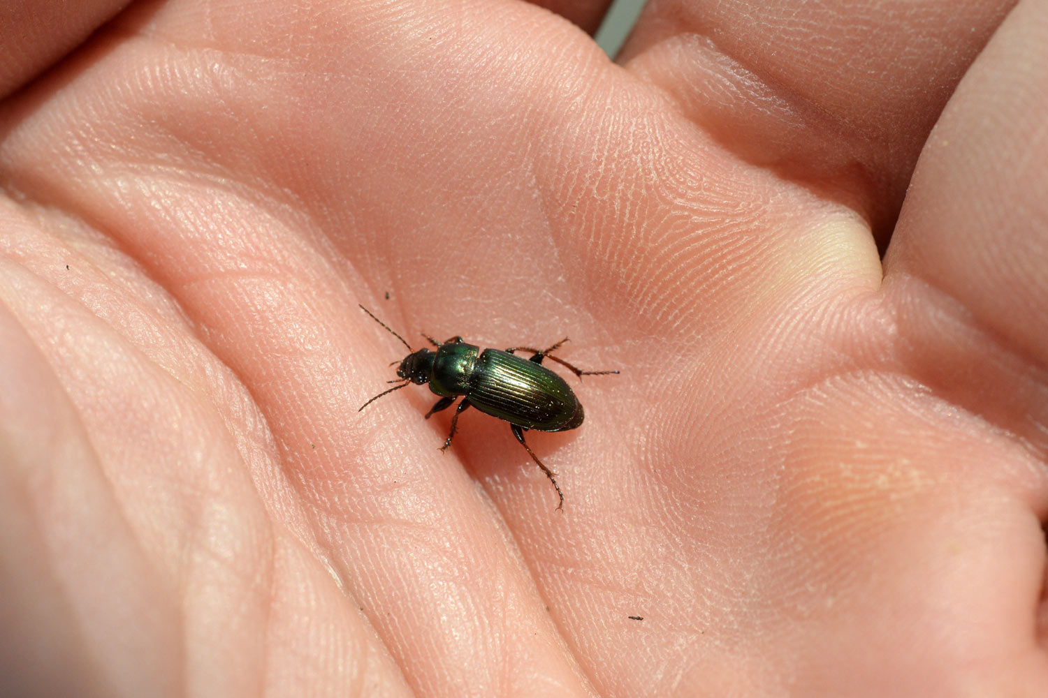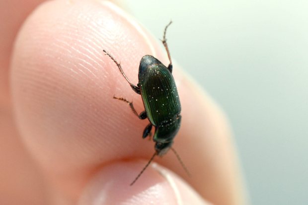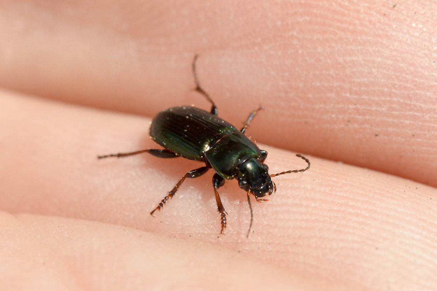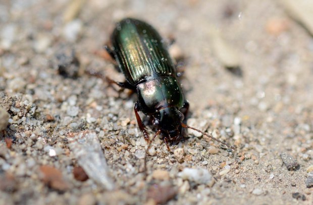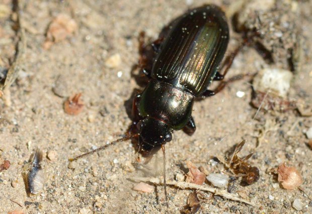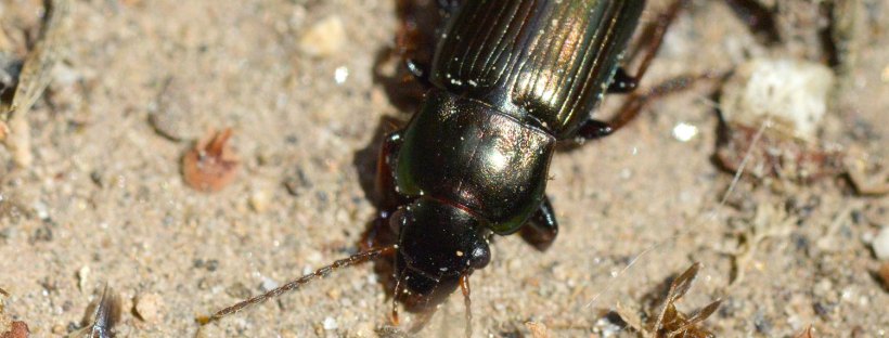 Encontré un carábido en un parque de Montigalà, Badalona. La identificación de las especies de esa familia de coleópteros no es nada fácil. Y menos las especies de la subfamilia Harpalinae. Gracias a la ayuda de un especialista, supe que el individuo de las imágenes pertenece a la especie Harpalus distinguendus.
