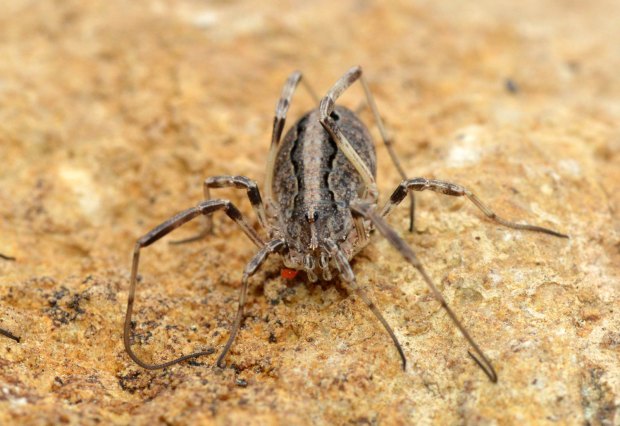 Hace una semana estaba buscando hormigas en la Sierra del Montsec (Lleida). Estaba en una cima a 1.570 m de altitud donde se encuentra el observatorio astronómico. Buscaba, entre otros lugares, debajo de piedras. Y justo la última que levanté me dio una alegría. Había una pareja de opiliones preciosos. Volteé la piedra para observarlos. No se inmutaron. Se quedaron quietos todo el rato que estuve tomando fotografías. Luego volví a colocar la piedra con cuidado en su sitio. Tuve la suerte de encontrar un macho y una hembra de Odiellus troguloides.