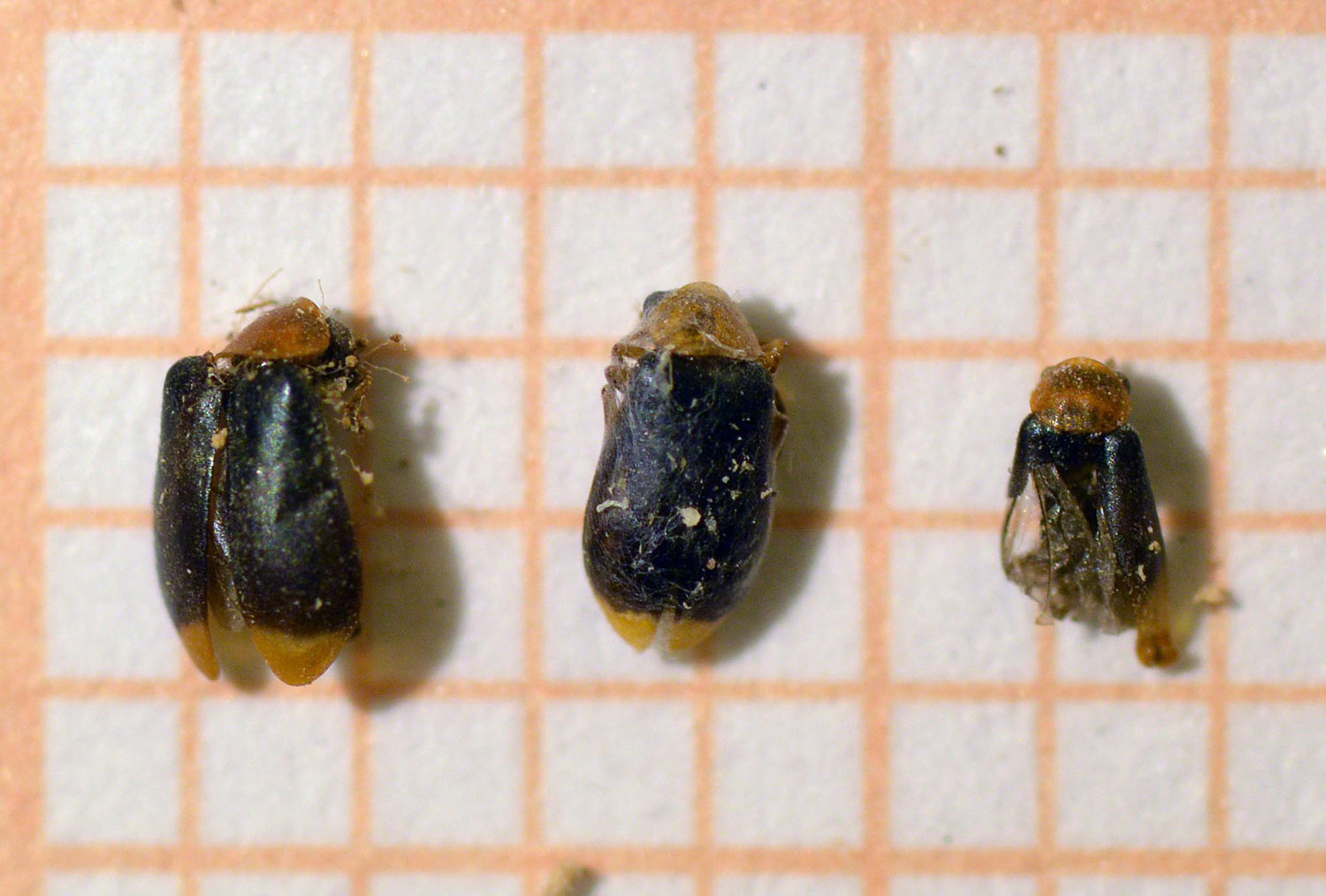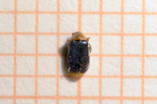 He encontrado poca información sobre Hypebaeus flavicollis y sobre otras especies de este género. Por supuesto, serán abundantes los adultos en el exterior y sobre flores durante la primavera. Aunque son de pequeño tamaño (2 mm aprox) y no son fáciles de ver. Pero tienen la capacidad de poder desarrollarse en el interior de viviendas, ya sea depredando insectos vivos o muertos. No creo que su encuentro en viviendas sea algo accidental, sino que la hembra habrá accedido para depositar los huevos en lugares adecuados, tal y como por ejemplo hace la hembra de Anthrenus (Dermestidae). En las imágenes, se pueden ver seis ejemplares adultos diferentes. De estos, tan solo uno es un macho. Se puede ver en la imagen número 4, en la parte izquierda. Se caracteriza por tener un apéndice que se retuerce en cada extremo de los élitros. Está constatada su distribución por la Europa mediterránea principalmente desde la Península Ibérica hasta Turquía [3].