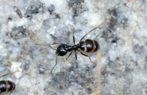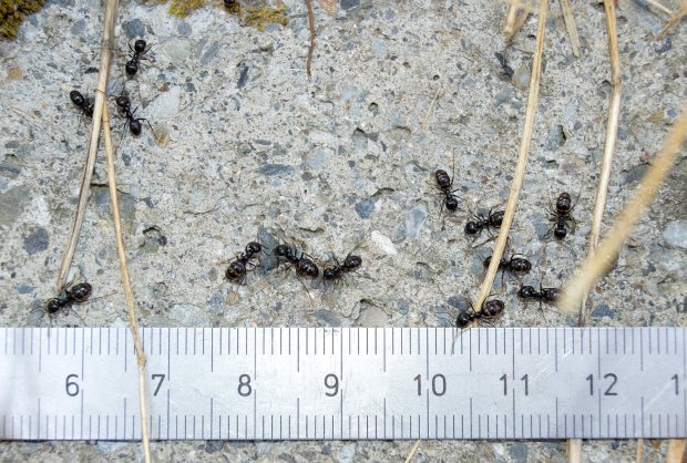 Paré a la entrada de Bossòst, Val d’Aran, población que se encuentra a 920 metros sobre el nivel del mar (figura 1). Junto a la orilla del río Garona pude ver desfilar una larga hilera de hormigas negras brillantes. Recogí una obrera y con la ayuda de una lupa la observé. Vi que tenía el mesosoma característico del género Lasius y, también, poca pilosidad. Al mirar la cabeza de frente pude ver que tenía el contorno en forma de corazón. Con estas caracterísiticas, solo tenemos una especie en Europa. Se trata de Lasius (Dendrolasius) fuligionosus, cuyo comportamiento es pacífico y acorde al contorno de su cabeza.