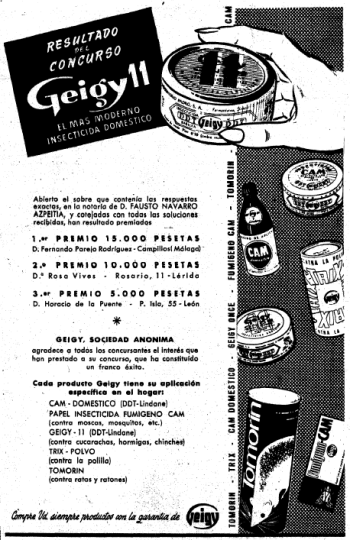 [5] C. Pradera. 25-95-2014. Apuntes sobre la producción del DDT en España (II). El desinsectador y desratizador.
