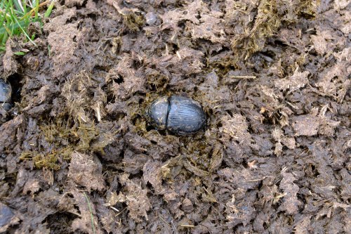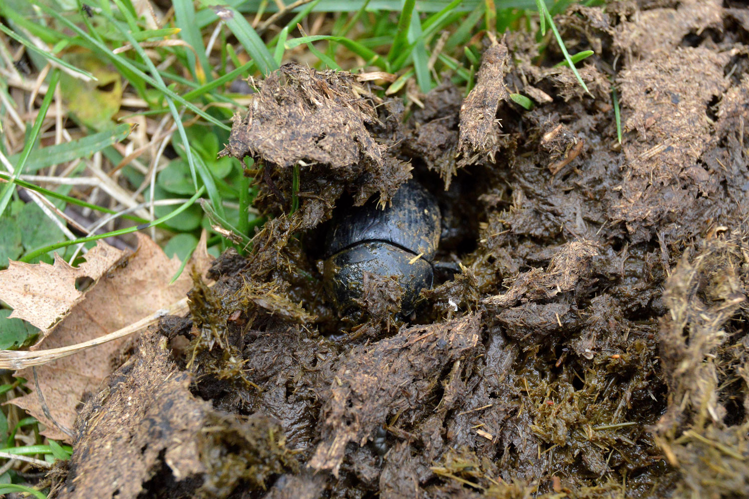 Me encanta observar un excremento de vaca y ver la vida que se puede desarrollar en su interior. Esto hice hace un mes, a principios de septiembre, cuando pasé el día en Boavi, hermoso paraje del Pirineo de Lleida a 1.400 m. de altitud. Y lo que observé es algo típico de finales de verano y principios de otoño. Había un montón de escarabajos del género Geotrupes intentando sacar partido a toda aquella energía que las vacas habían excretado [1]. Los Geotrupes son abundantes durante esta época, ya que es cuando se produce la reproducción. Son un blanco fácil del objetivo fotográfico. Su bonito porte se ve realzado por los colores metálicos. Durante esta época son abundantes en alta montaña en los pastos para vacas y caballos.