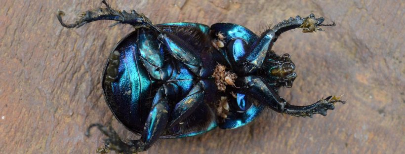 Según los manuales, los geotrúpidos (Geotrupidae) son una familia de escarabajos (Coleoptera) especializada en sacar partido de los excrementos y de las hojas [2]. El macho y la hembra colaboran para excavar una galería subterránea donde almacenan comida para el desarrollo de las larvas. Es un trabajo duro. Por un lado, las galerías deben ser suficiente grandes como para almacenar comida para alimentar a las larvas. Y por otro, llenarlas de excrementos u hojas. Estos escarabajos completan su ciclo en un año. Y gran parte de este tiempo es en forma larvaria.