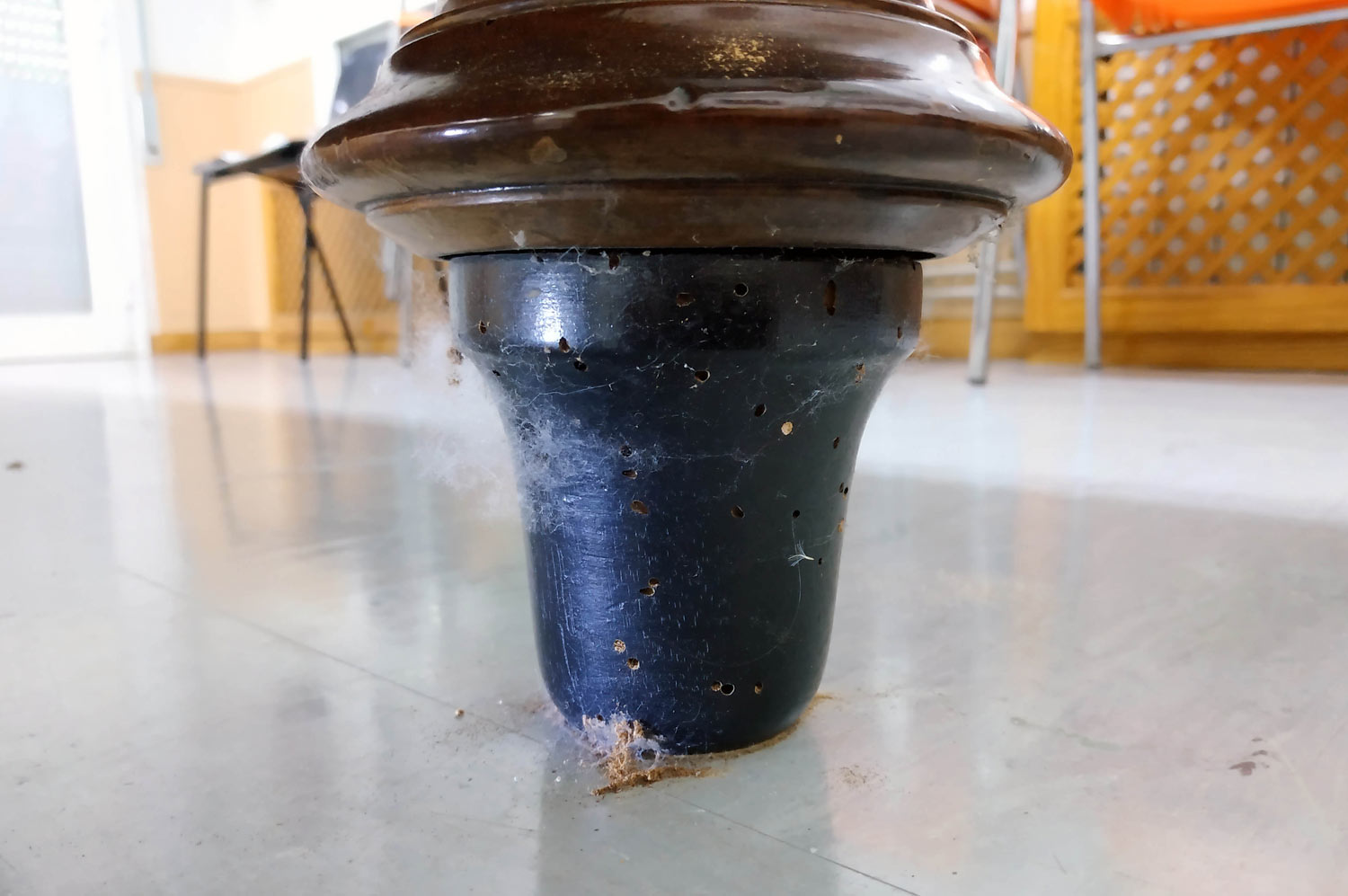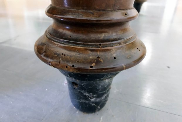 Fig 4. Mesa de billar afectada por Oligomerus ptilinoides./ C. Pradera 07-2018