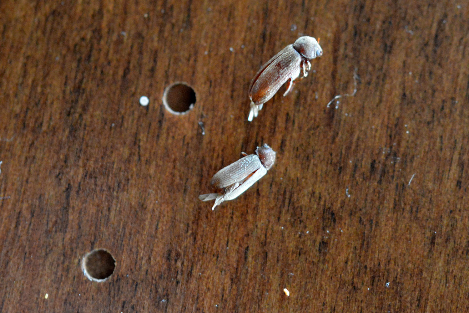 Los daños que muestro en las imágenes son en una mesa de billar que se encuentra en un edificio de Valldoreix, Barcelona. Fueron tomadas el pasado mes de julio, momento en el que aparecen mayor número de adultos de O. ptilinoides. En este mes se pueden ver volar estos coleópteros alrededor de los muebles afectados.