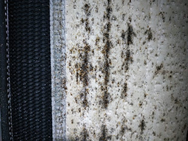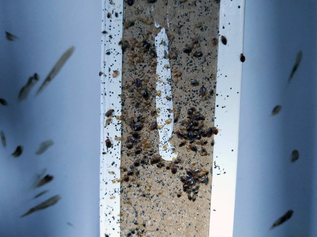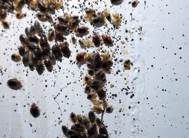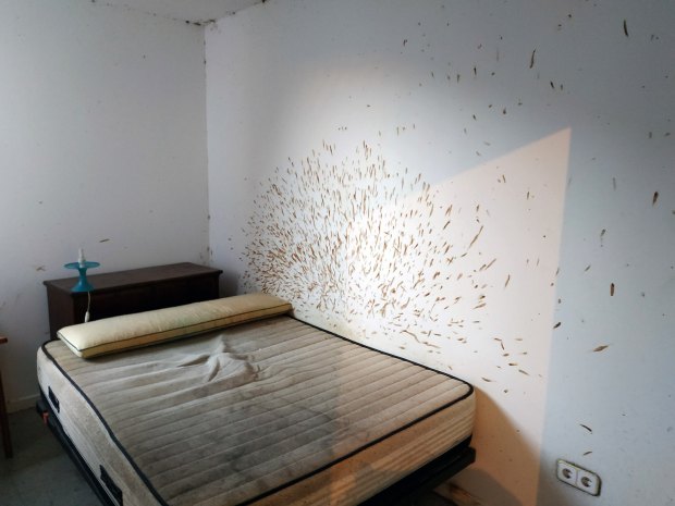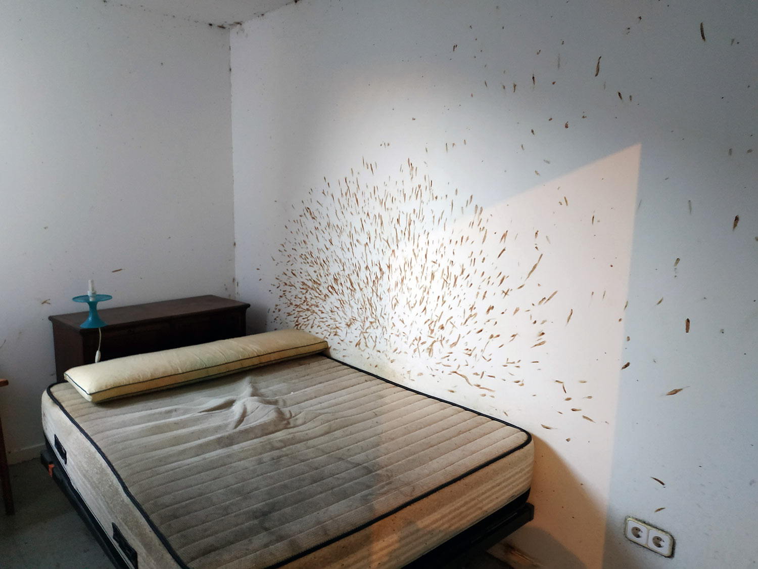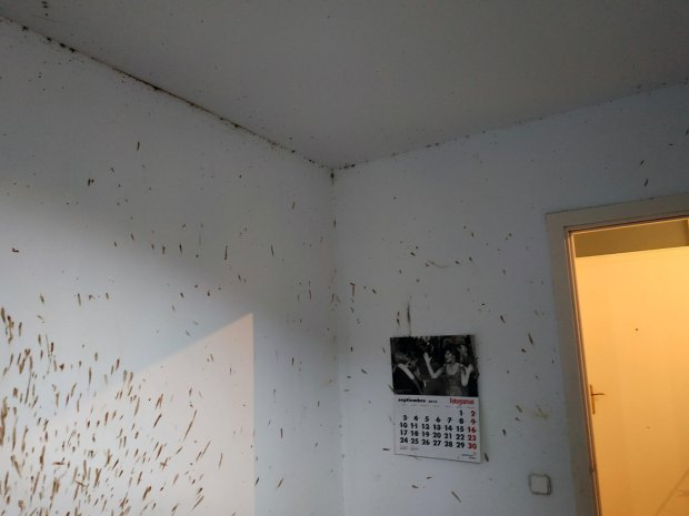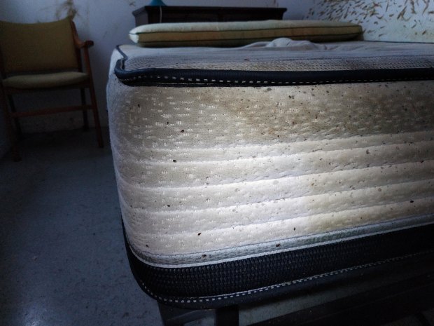 Fig 1. Habitación afectada por una severa infestación de chinches de cama (Cimex lectularius)./ C. Pradera 09-2018