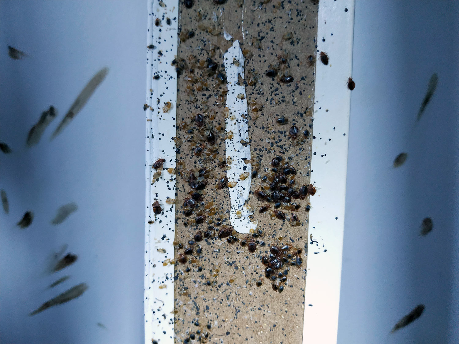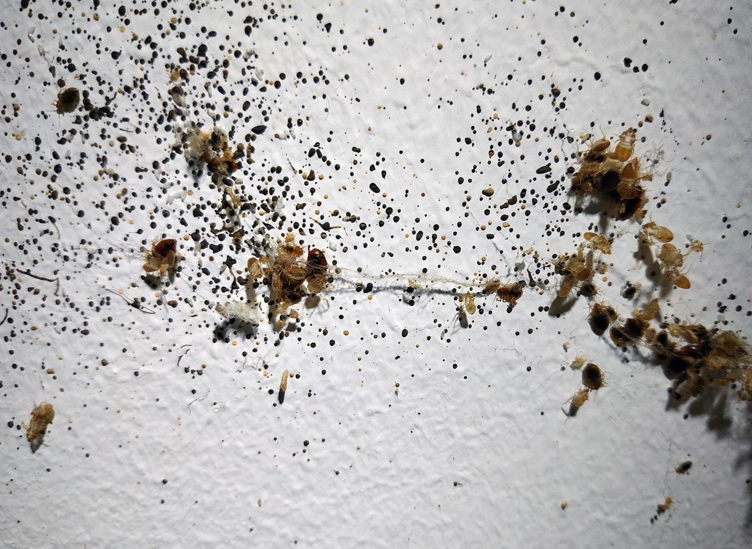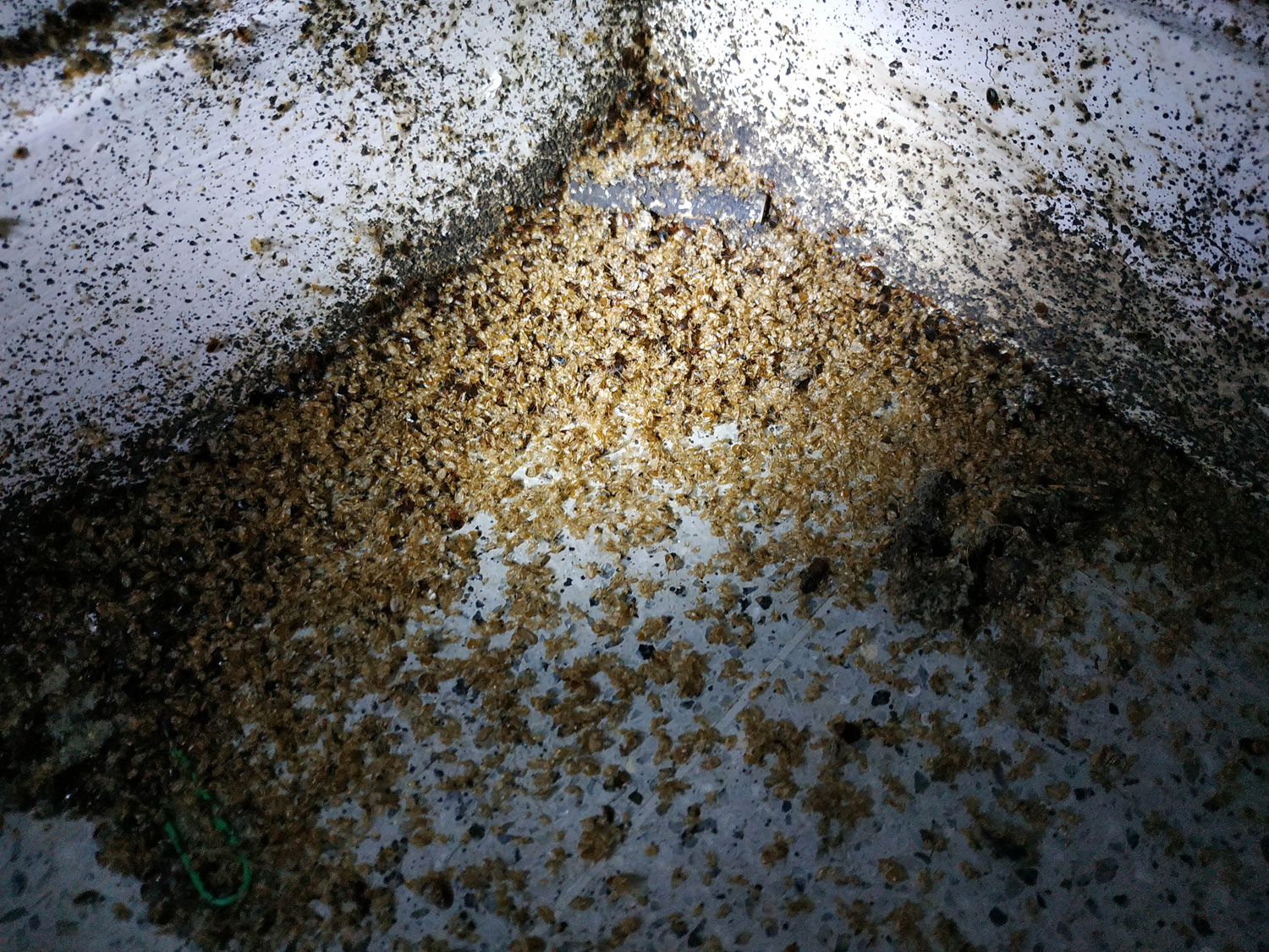 Fig 19. Esquina del suelo con chinches de cama (Cimex lectularius)./ C. Pradera 09-2018