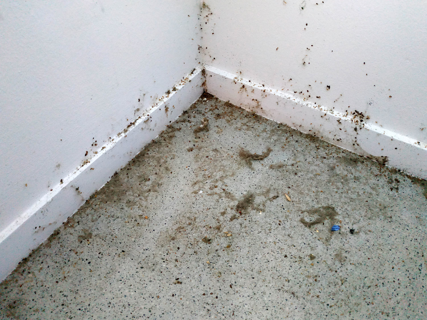 Fig 20. Esquina del suelo con chinches de cama (Cimex lectularius)./ C. Pradera 09-2018