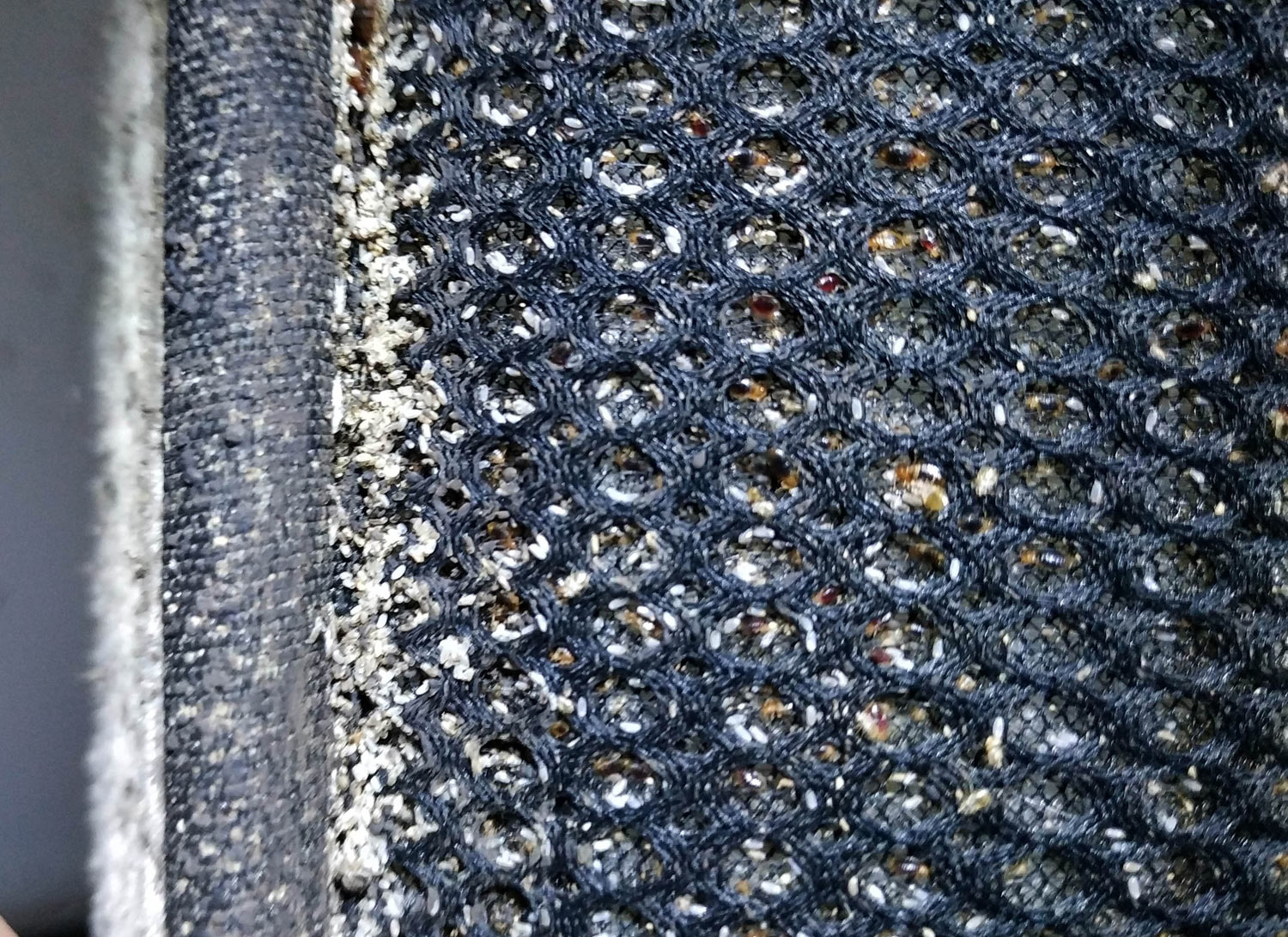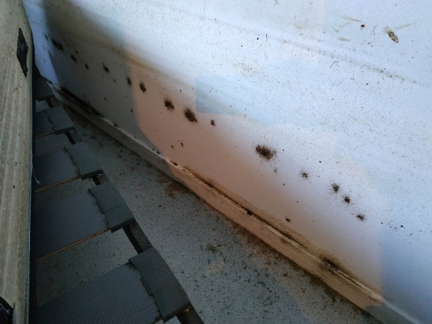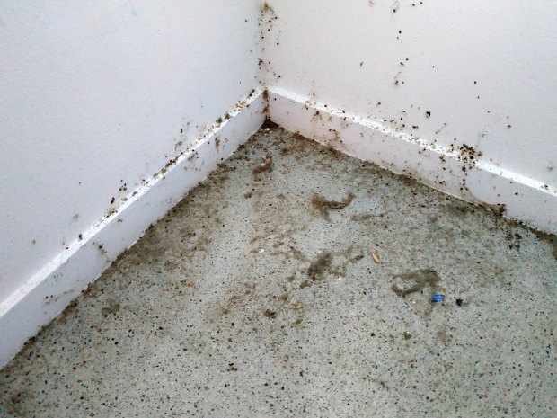Fig 18. Esquina del suelo con chinches de cama (Cimex lectularius)./ C. Pradera 09-2018