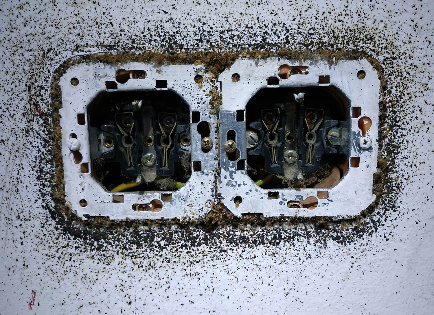Fig 13. Interruptor con excrementos de chinches de cama (Cimex lectularius)./ C. Pradera 09-2018