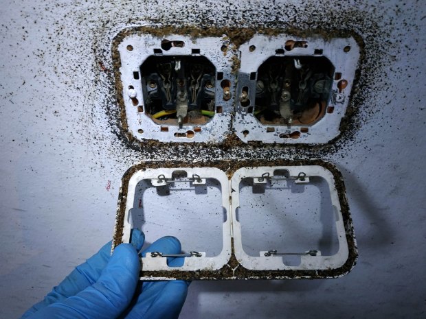 Fig 17. Enchufes con chinches de cama (Cimex lectularius)./ C. Pradera 09-2018
