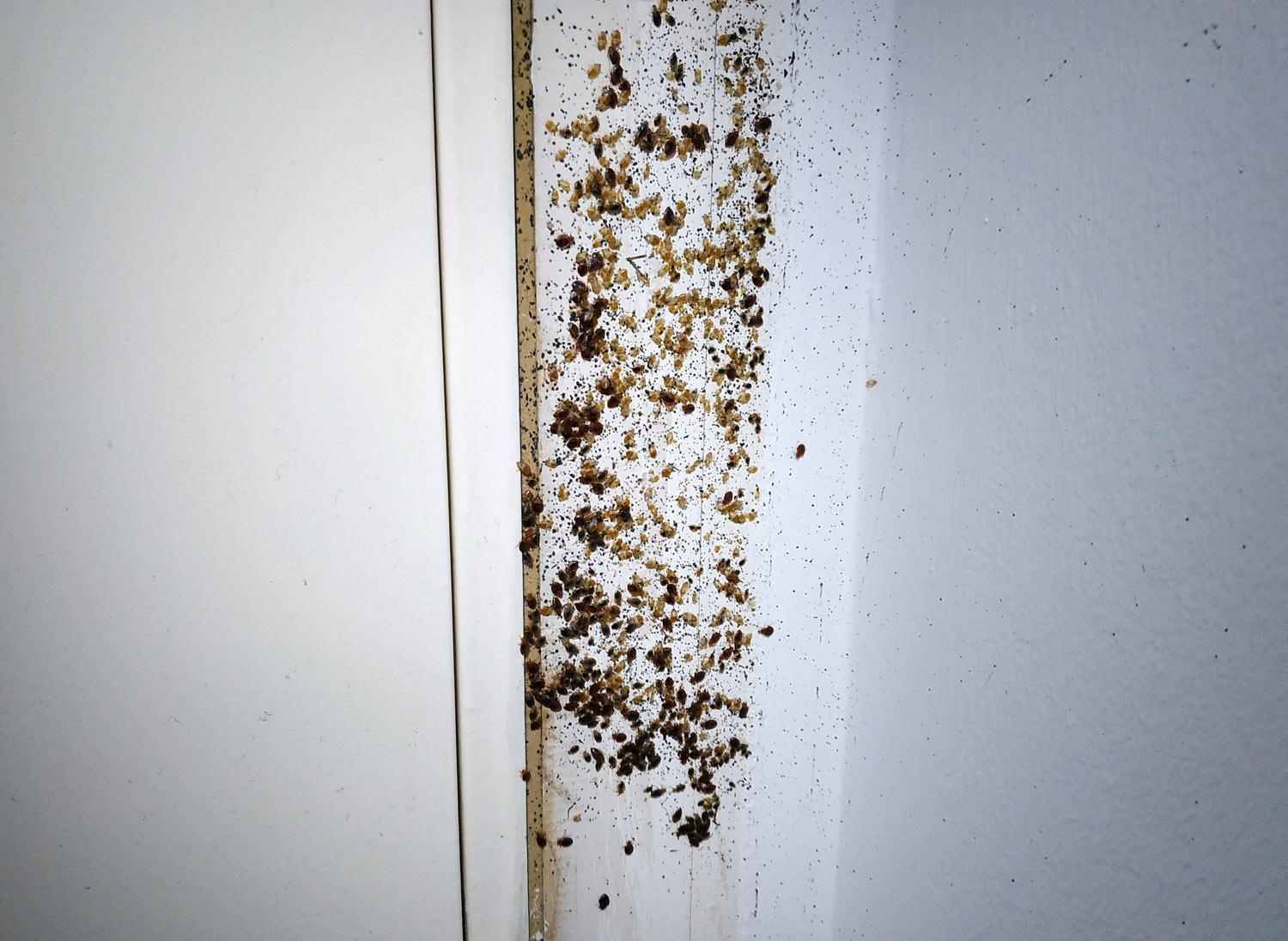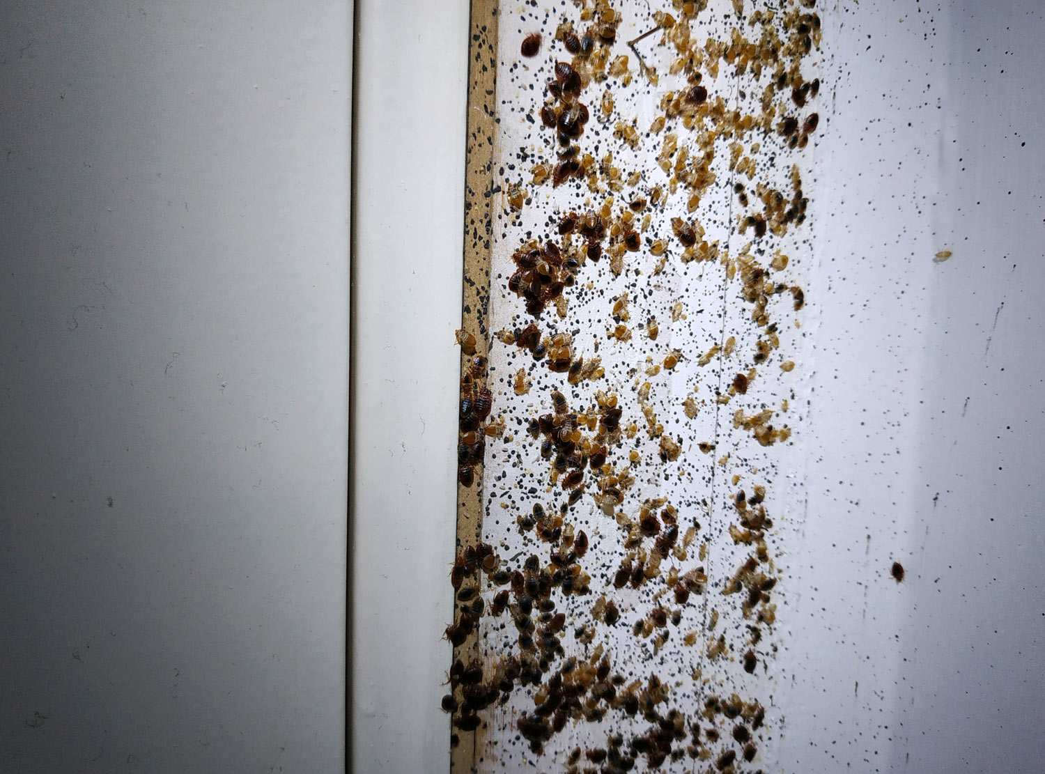 Fig 30. Marco de puerta con chinches de cama (Cimex lectularius)./ C. Pradera 09-2018