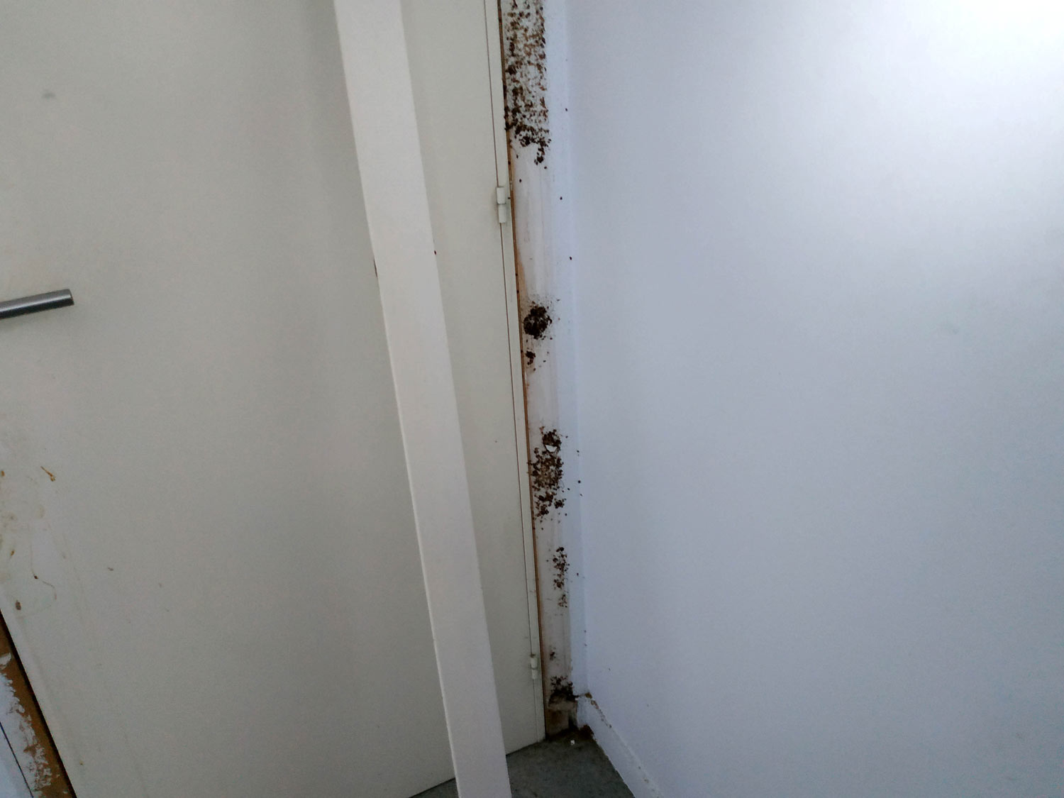 Fig 26. Marco de puerta con chinches de cama (Cimex lectularius)./ C. Pradera 09-2018