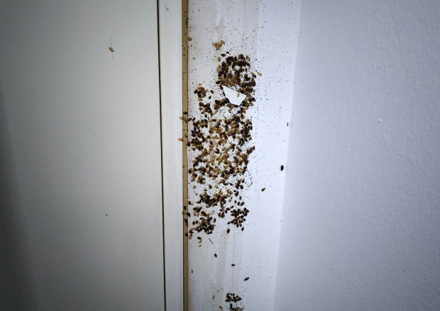 Fig 31. Marco de puerta con chinches de cama (Cimex lectularius)./ C. Pradera 09-2018