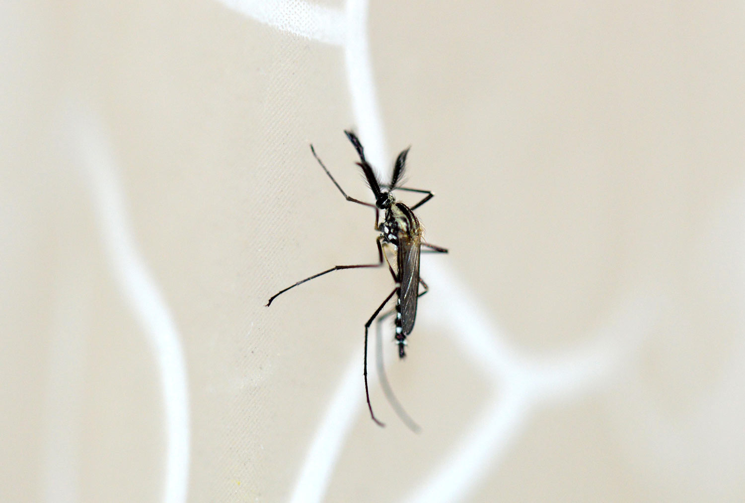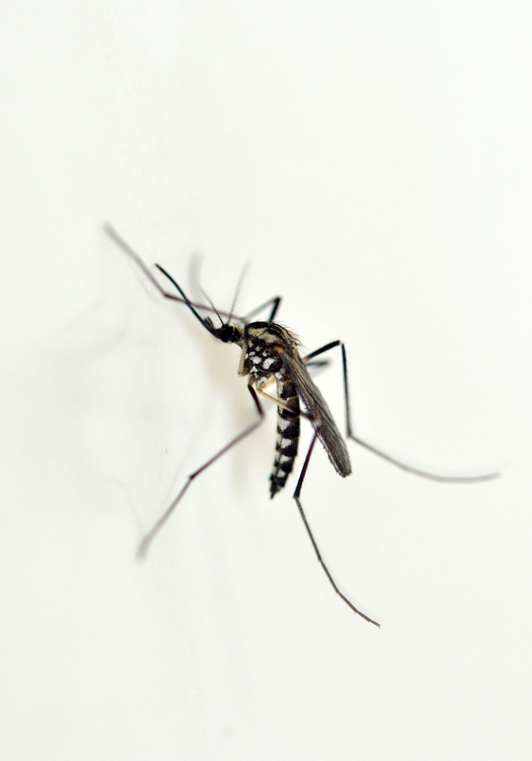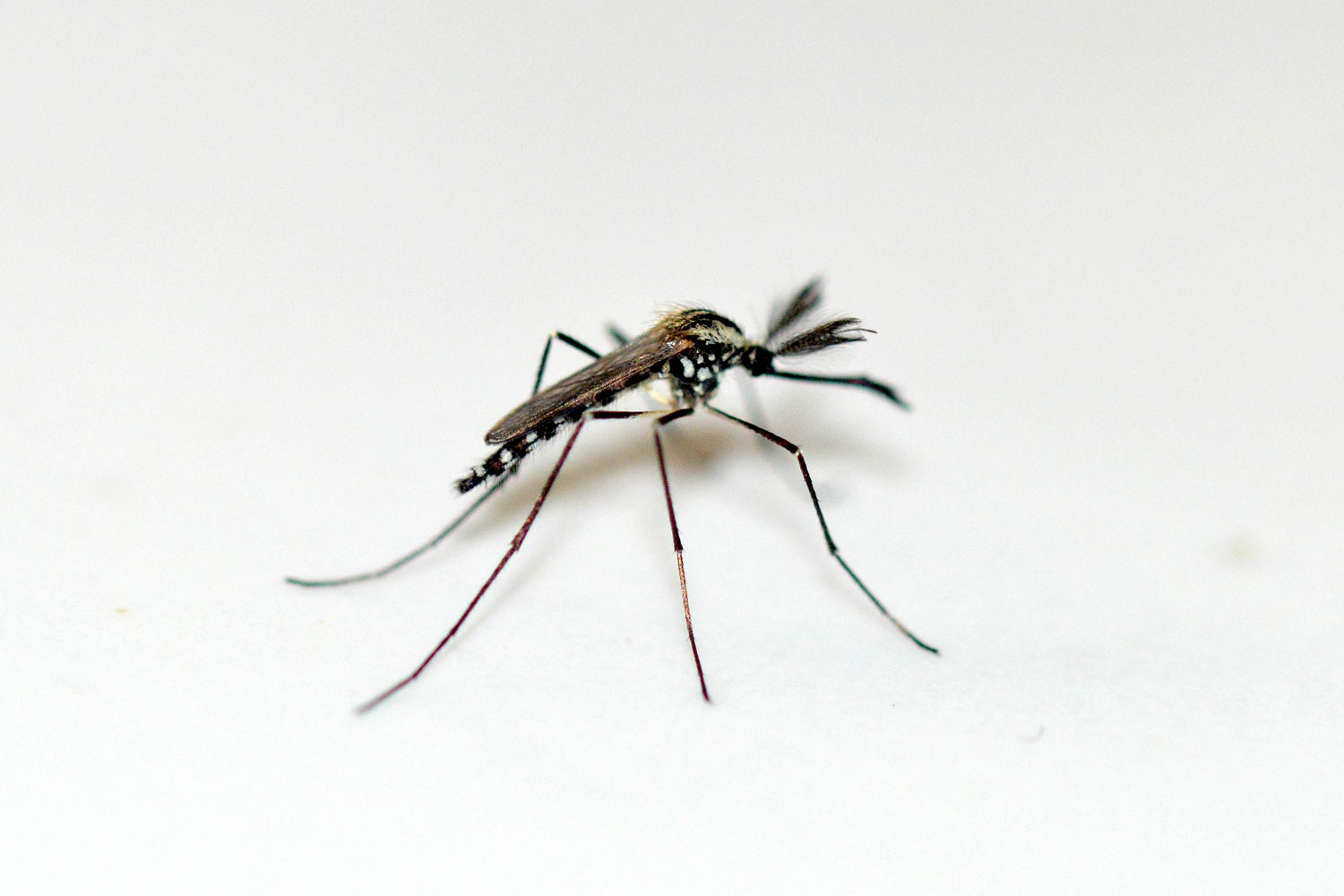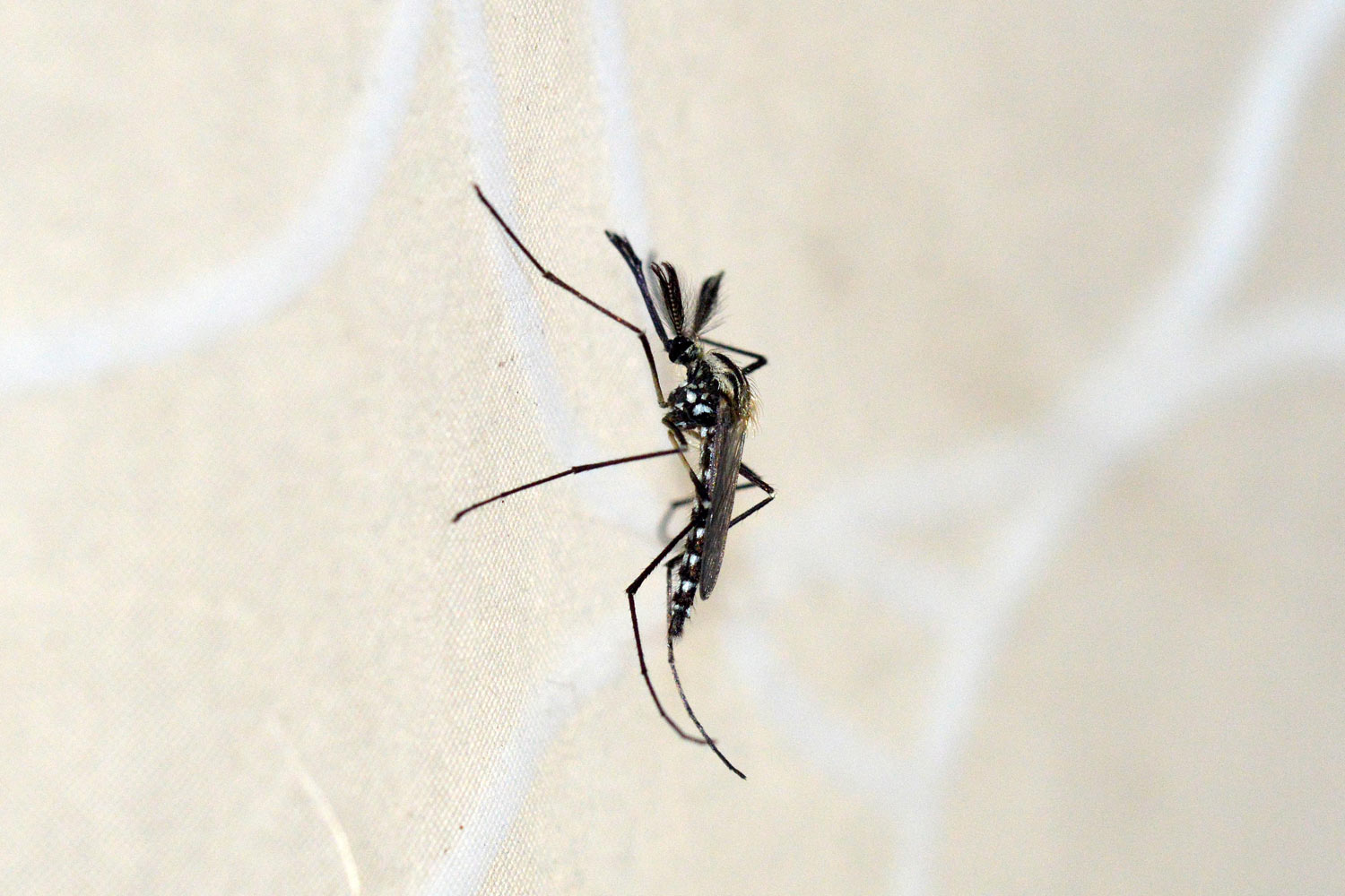 He aquí una serie de fotografías que tomé en casa de machos y hembras de mosquito de la especie Aedes geniculatus. Los adultos emergieron de pupas y larvas que recogí en el mes de junio en una dendrotelma cercana a la fuente de Sant Marçal en el Montseny a 1.090 metros de altitud [1]. Los solté en mi baño para poder tomar imágenes de detalle.