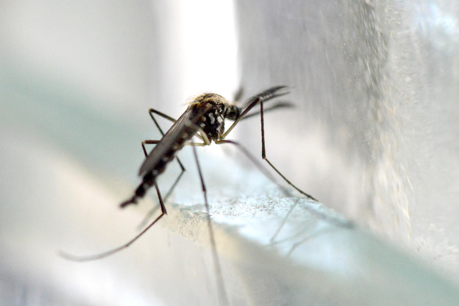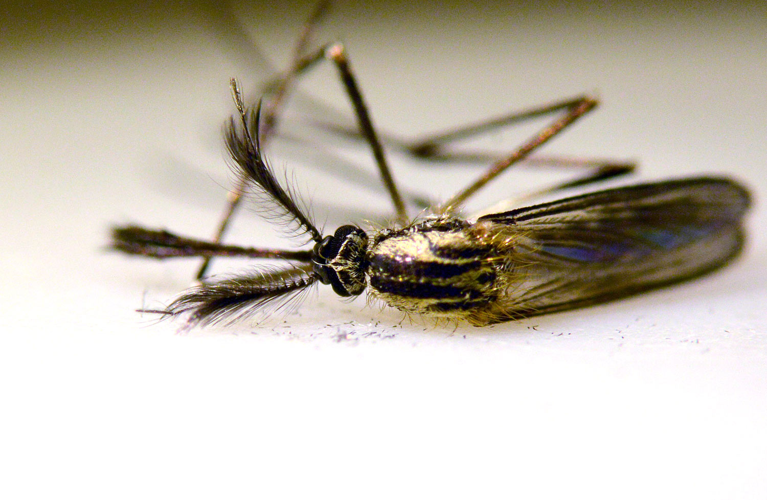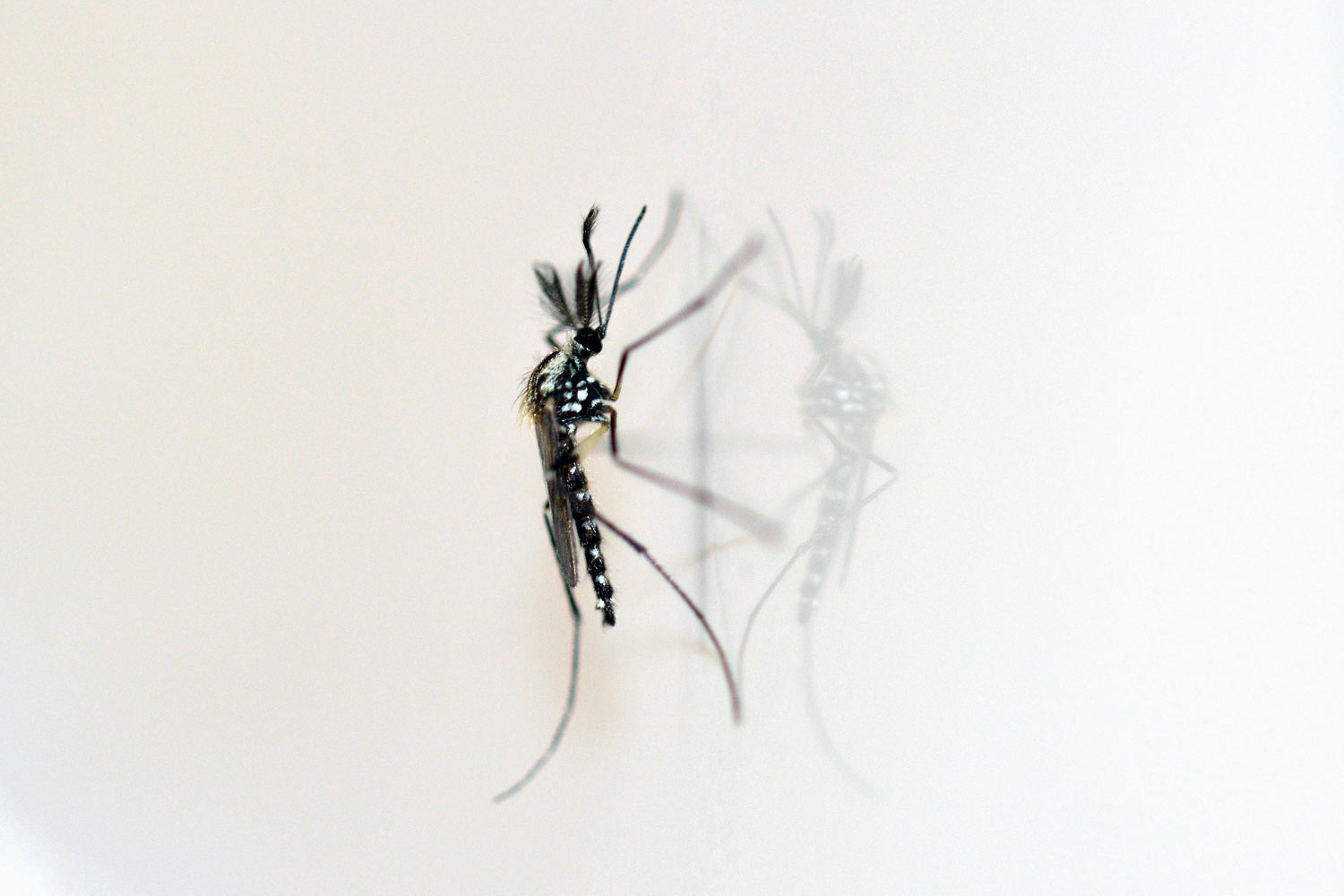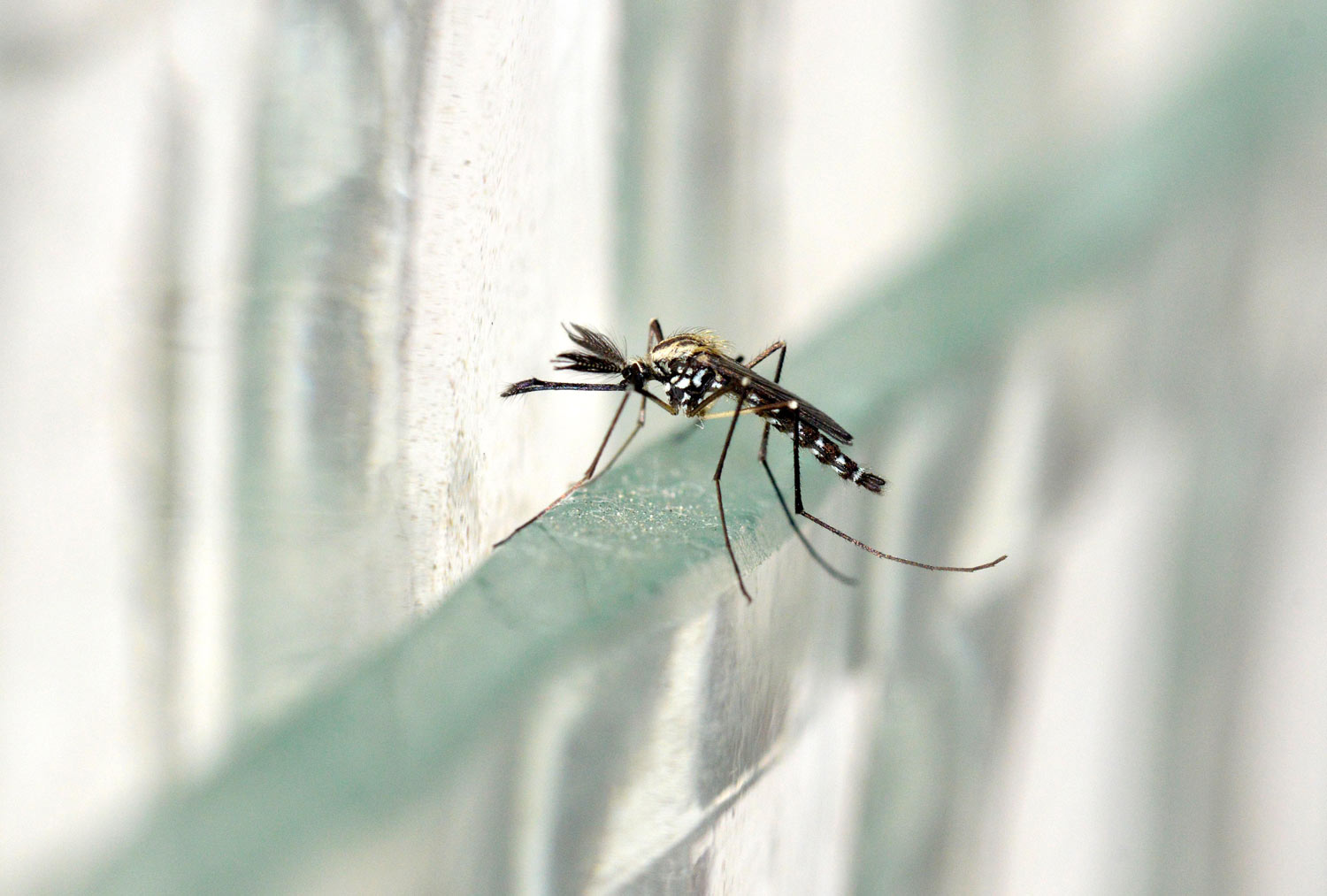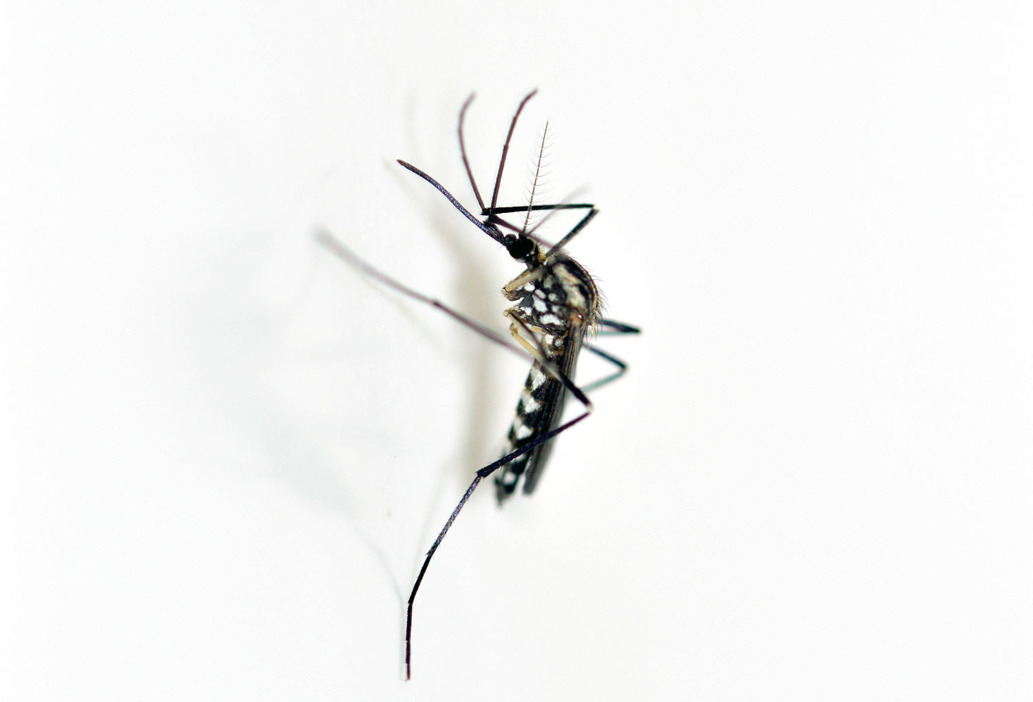 He aquí una serie de fotografías que tomé en casa de machos y hembras de mosquito de la especie Aedes geniculatus. Los adultos emergieron de pupas y larvas que recogí en el mes de junio en una dendrotelma cercana a la fuente de Sant Marçal en el Montseny a 1.090 metros de altitud [1]. Los solté en mi baño para poder tomar imágenes de detalle.