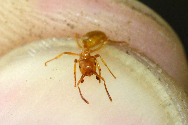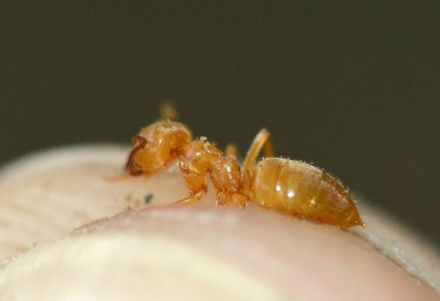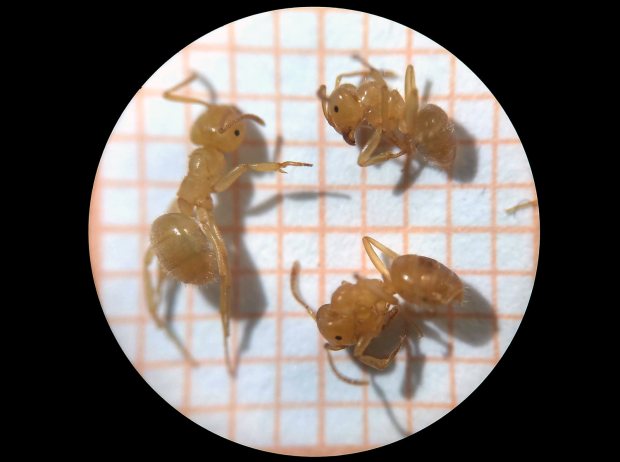 En casa vi que se trataba de alguna especie del subgénero Chthonolasius. En Europa tenemos 12 especies de este subgénero de las que 9 se encuentran muy extendidas [2]. Tras afinar mi vista con la lupa binocular, llegué a la conclusión de que se trataba de Lasius meridionalis. Como se puede ver en la imagen número 14, las obreras de esta especie miden alrededor de 4 mm. Y más en concreto, entre 3’5 y 5 mm.