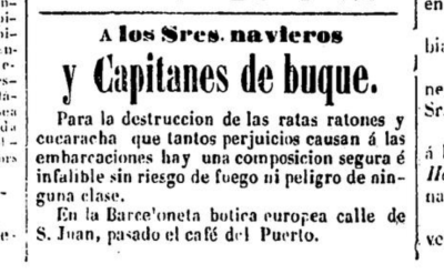 Fuera de estos anuncios entre 1851 y 1852, nada más he encontrado sobre las píldoras de Lanusky. Ahora bien, parece que a partir de entonces, los productos raticidas se hicieron un hueco en el mercado y, por ende, en los periódicos. En la imagen número 6, se puede ver el anuncio de otro raticida publicado en un periódico barcelonés en noviembre de 1853. Es interesante porque el producto no se dirige al público en general, sino a los navieros y capitanes de buque. Sabemos de la problemática en los barcos que además fueron los responsables de llevar las ratas de un lado para otro. A mediados del XIX la rata de alcantarilla (Rattus norvergicus) se encontraba en expansión por la Península Ibérica y por otras partes de Europa. Sabemos que la incidencia de esta especie es mayor que la de rata negra (Rattus rattus). Entre otras cuestiones, es de mayor tamaño, forma colonias mayores y es más agresiva. Su presencia debió alarmar y creó la necesidad de productos y servicios de desratización.