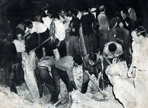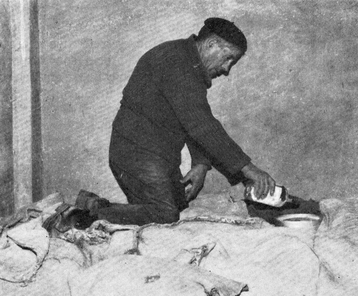 Fig 1. Aplicación de sulfuro de carbono. Fotografía de ‘La polilla de los cereales’ de Miguel Benlloch (1948).
