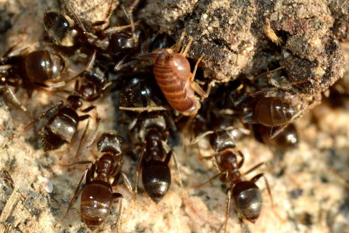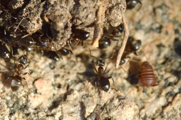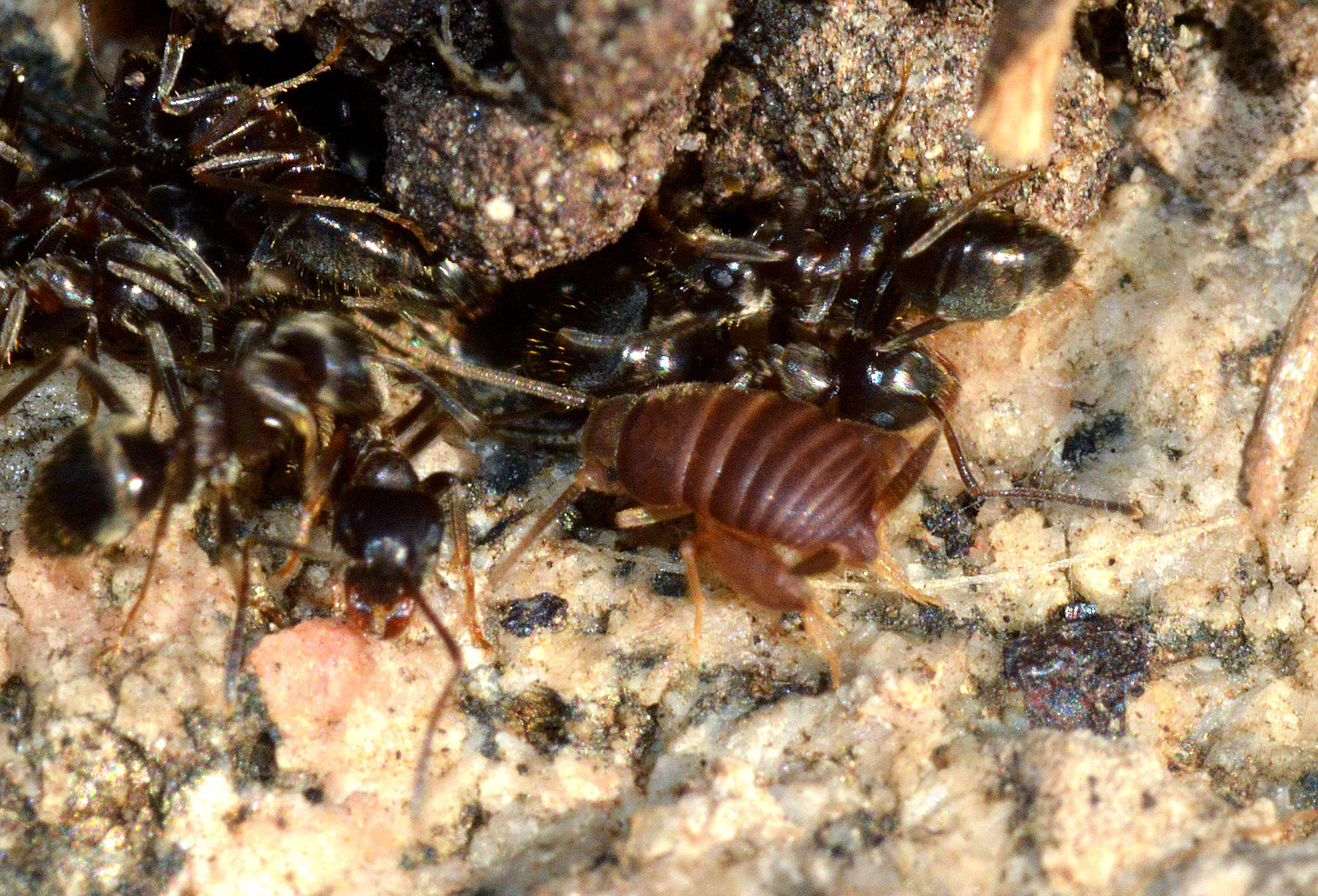 El pasado mes de marzo de 2018, pude ver unos pequeños grillos bajo una piedra en un nido de Lasius grandis cerca de donde resido, en Santa Coloma de Gramenet (Barcelona). Al mover la piedra, tanto las obreras como los grillos empezaron a moverse en busca de refugio. Rápidamente, intenté tomar algunas fotografías de las que he hecho una selección que muestro en esta entrada.