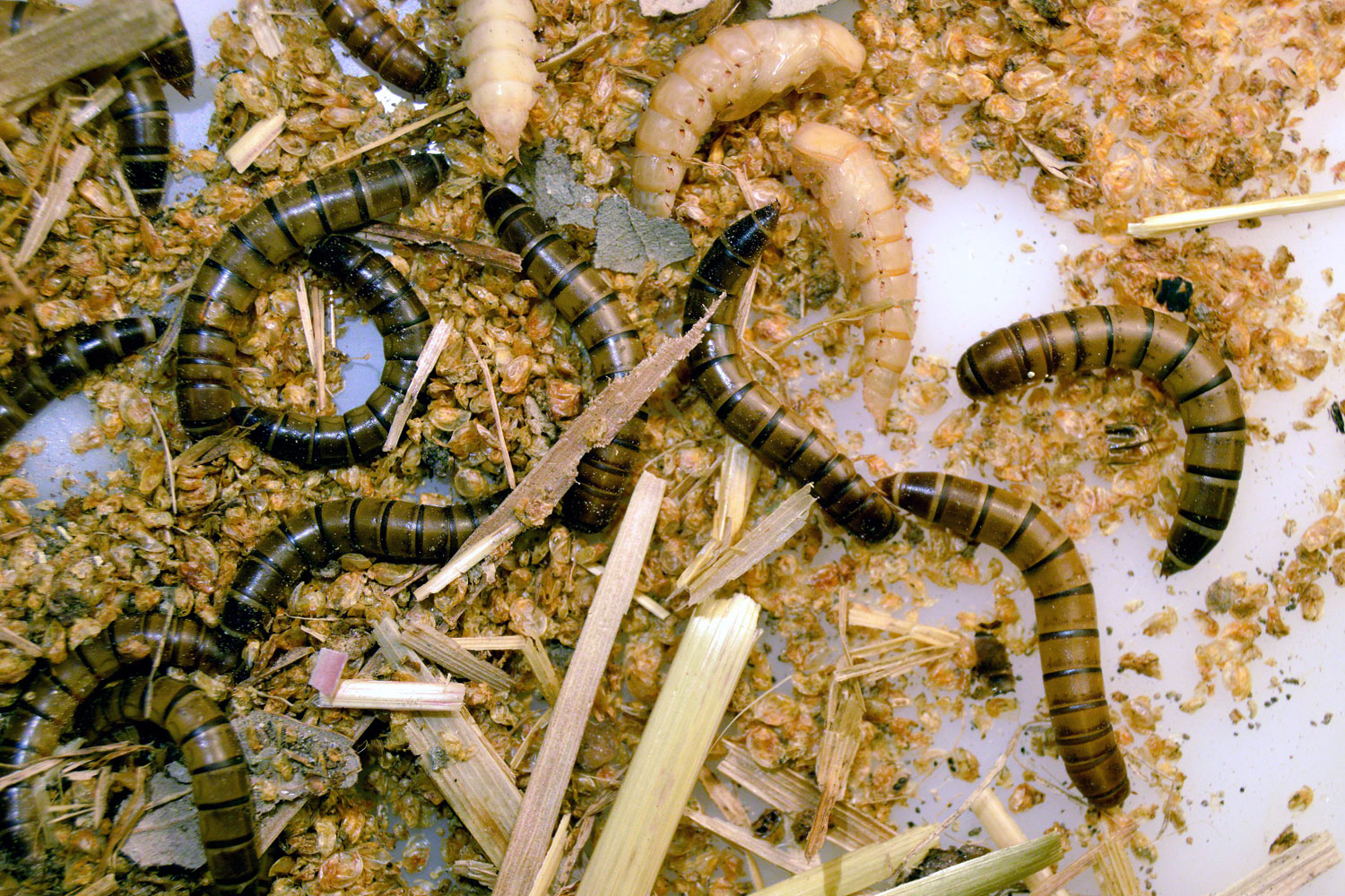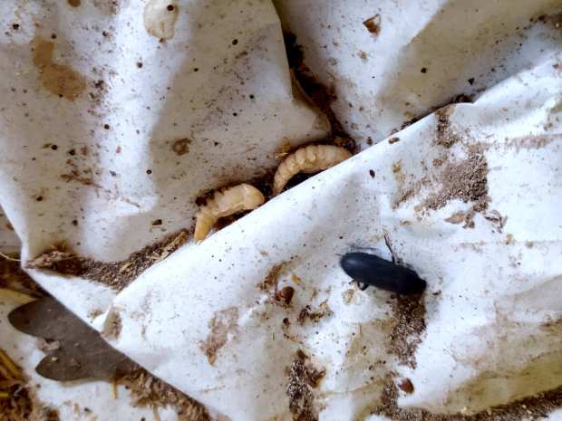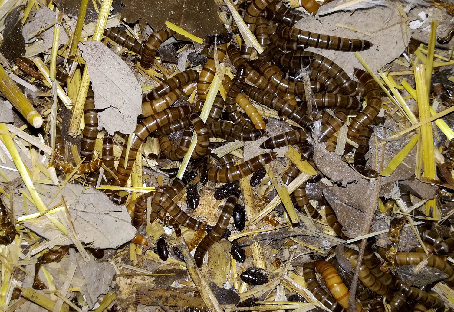Para acabar, apunto que he visto larvas de Tenebrio en otras partes de granjas. Aunque eso sí, en principalmente en zonas donde haya acumulación de paja y materia orgánica donde la larva se puede mover. Recogí otra muestra el pasado mes de febrero en una granja de vacas de Cornellà del Terri (Girona). Las larvas se encontraban en unos sacos de pienso. Estaban abierto y se habían acumulado en un rincón. Veremos qué especie emerge [2].