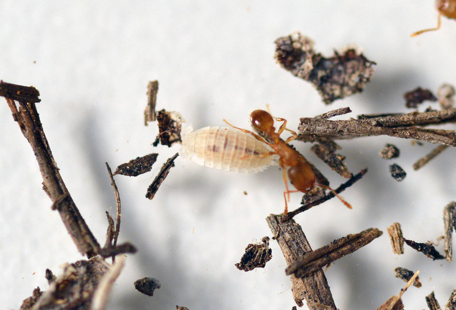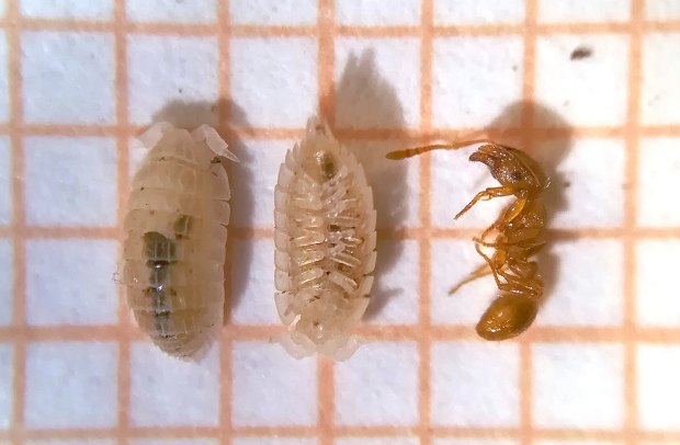 Fig 5. Isópodo Platyarthrus y hormiga Tetramorium semilaeve./ C. Pradera 03-2019