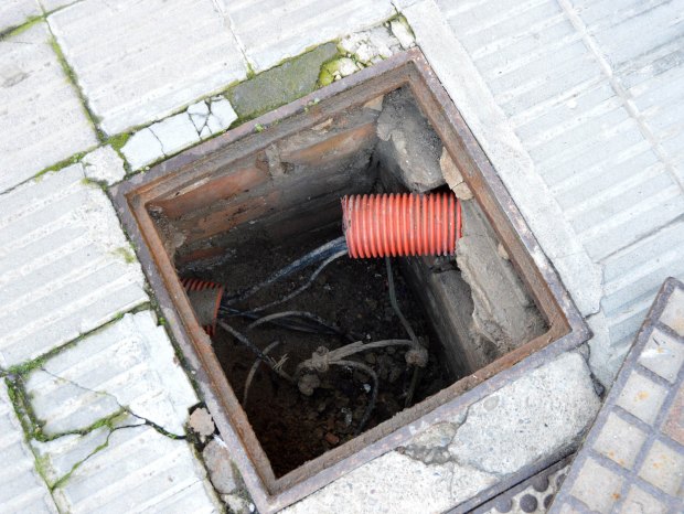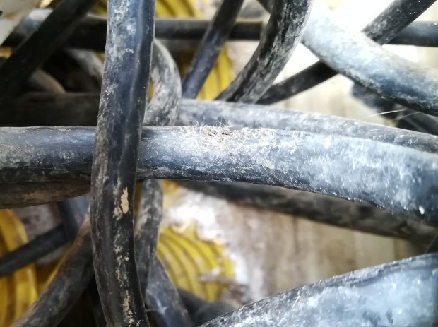 Por otro lado, está el cableado subterráneo que da posibilidades a la rata de alcantarilla (Rattus norvegicus). En las imágenes de esta entrada, doy constancia de cómo esta especie de rata dispone ahora de una nueva vía de circulación. Para llevar la fibra óptica a muchos hogares se levantó el suelo y se hizo pasar un pasatubos flexible de un diámetro por el que las ratas pasan la mar de bien. Además, allí donde no pudieran pasar, la capacidad de roer de estos animales acaban por ensanchar el paso. Un hecho básico, es que el cable de fibra óptica ofrece poca resistencia. Es como mantequilla para los incisivos de una rata. Es poco con lo que entretenerse, pero suficiente para cortar la comunicación.