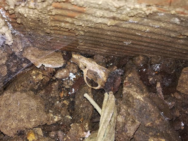 Fig 14. Registro subterráneo de fibra óptica con raticida aplicado por un vecino./ C. Pradera 04-2019
