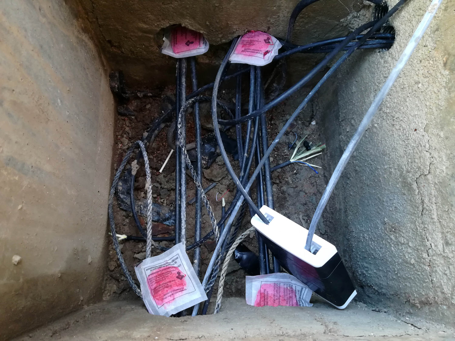 Fig 14. Registro subterráneo de fibra óptica con raticida aplicado por un vecino./ C. Pradera 04-2019