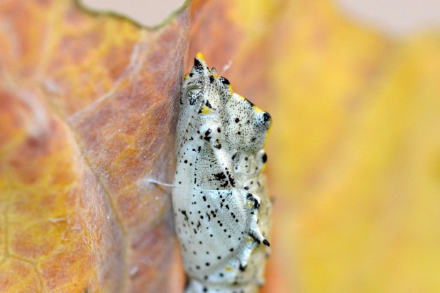 Fig 19. Crisálida de mariposa blanca de la col (Pieris brassicae)./ C. Pradera 06-2018