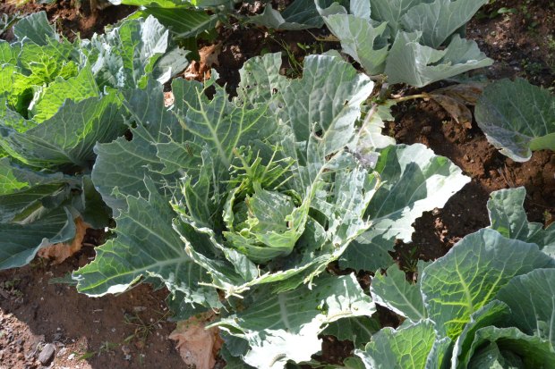 Fig 4. Col atacada por orugas de mariposa blanca de la col (Pieris brassicae)./ C. Pradera 06-2018