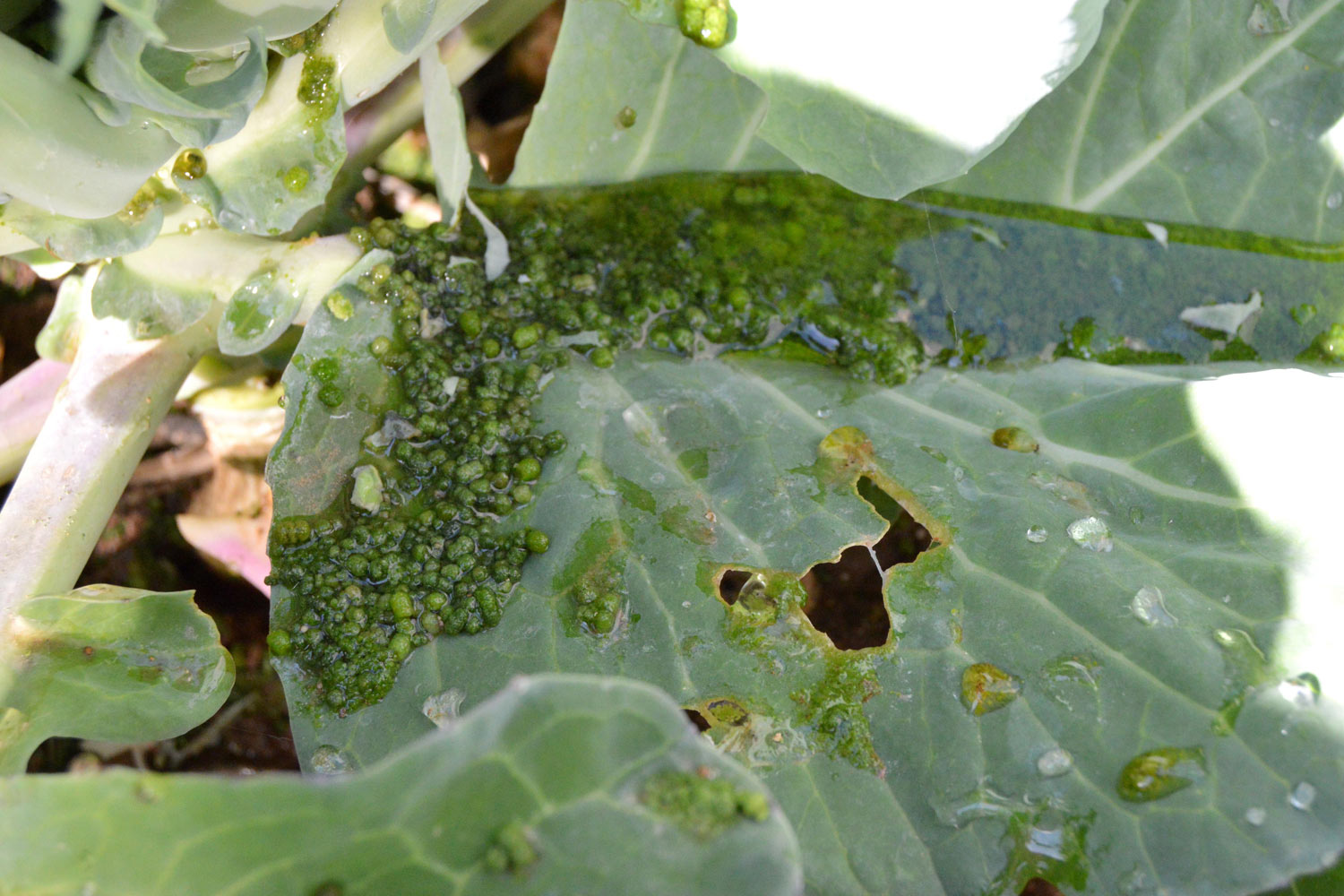 Fig 6. Col atacada por orugas de mariposa blanca de la col (Pieris brassicae)./ C. Pradera 06-2018
