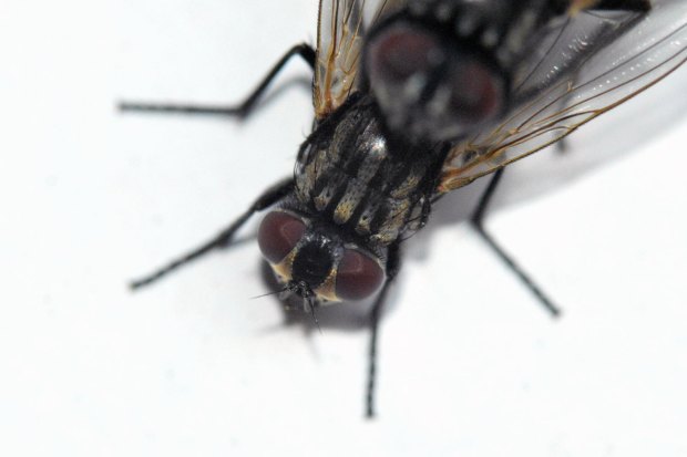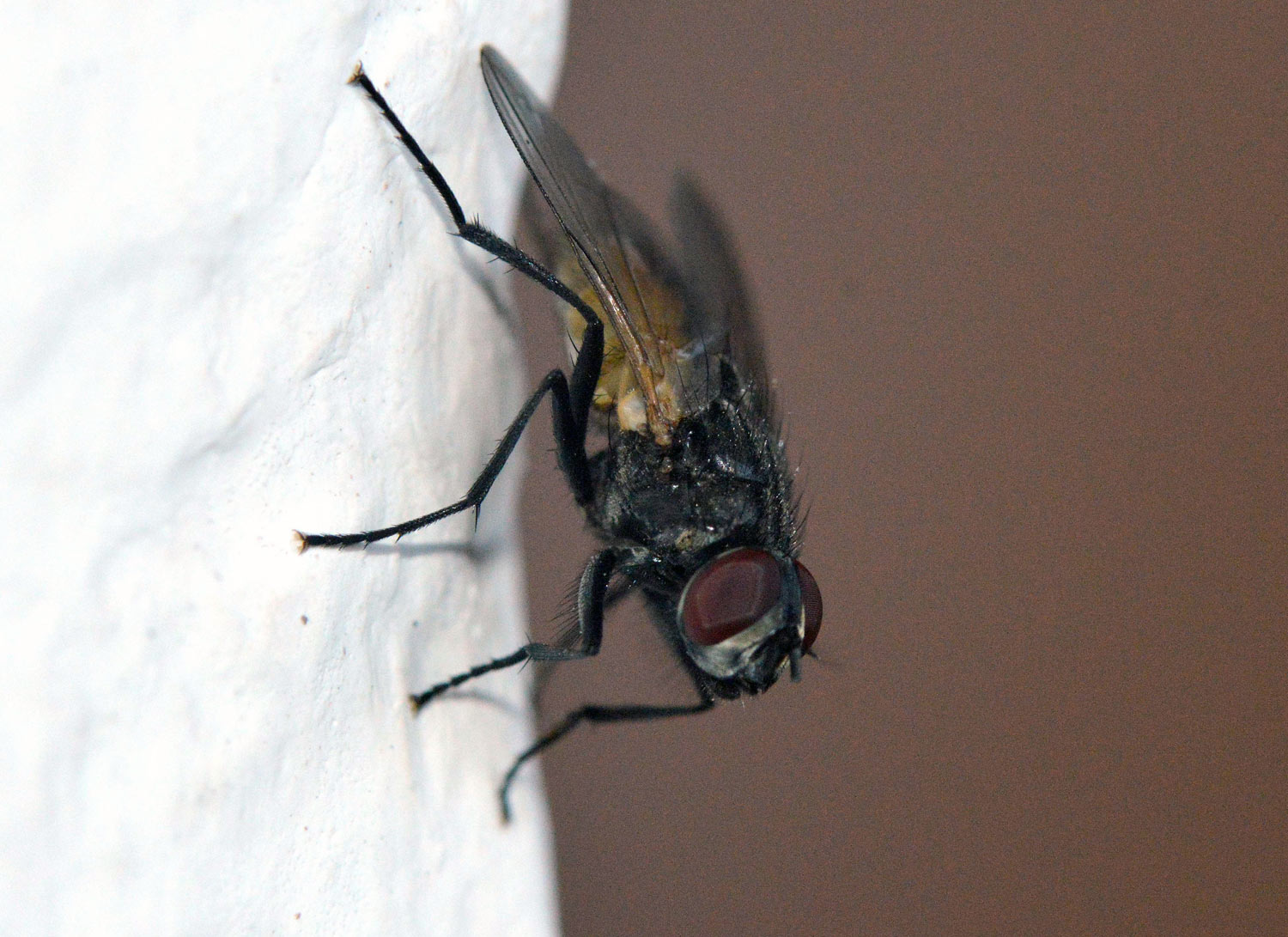 Mientras hablaba con Luis de cualquier cosa, me entretenía en buscar insectos. Es una persona sencilla con una mentalidad sencilla y positiva. Le pregunté si había visto en el corral garrapatas, pulgas, mosquitos, etc. Me decía que no, que no era época. Sin embargo, lo que abundaba en su comedor eran un montón de moscas, de moscas domésticas, las nuestras, las que se adaptaron de maravilla a tocar las narices a la humanidad. Me entretuve en tomar fotografías porque no tenía nada más a mano y no quería alejarme mucho de Luis.
