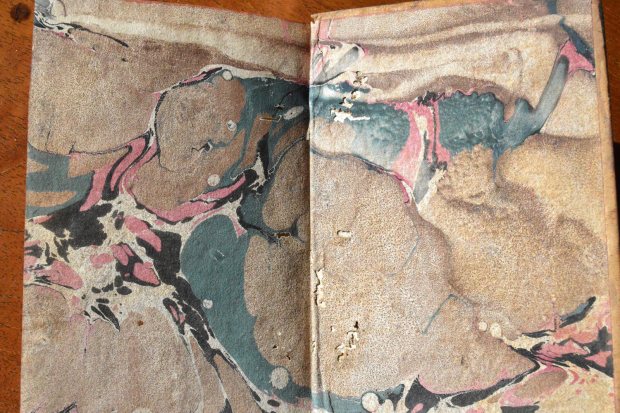 Fig 3. Libros dañados por anóbidos (Anobiidae)./ C. Pradera 09-2018